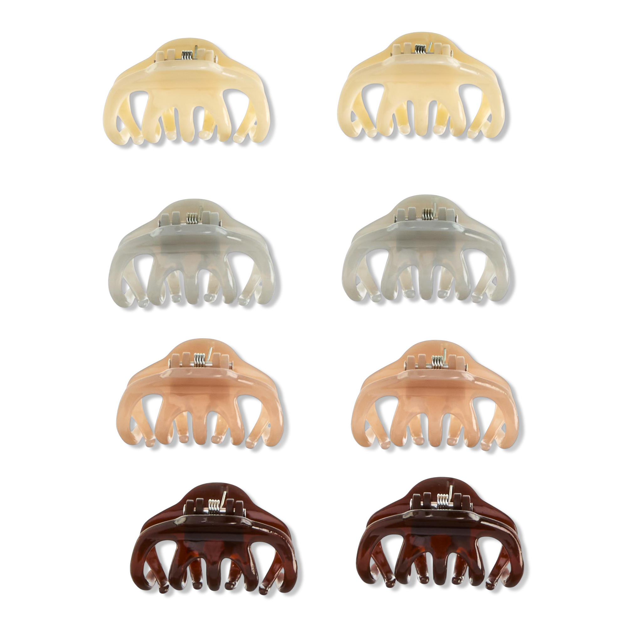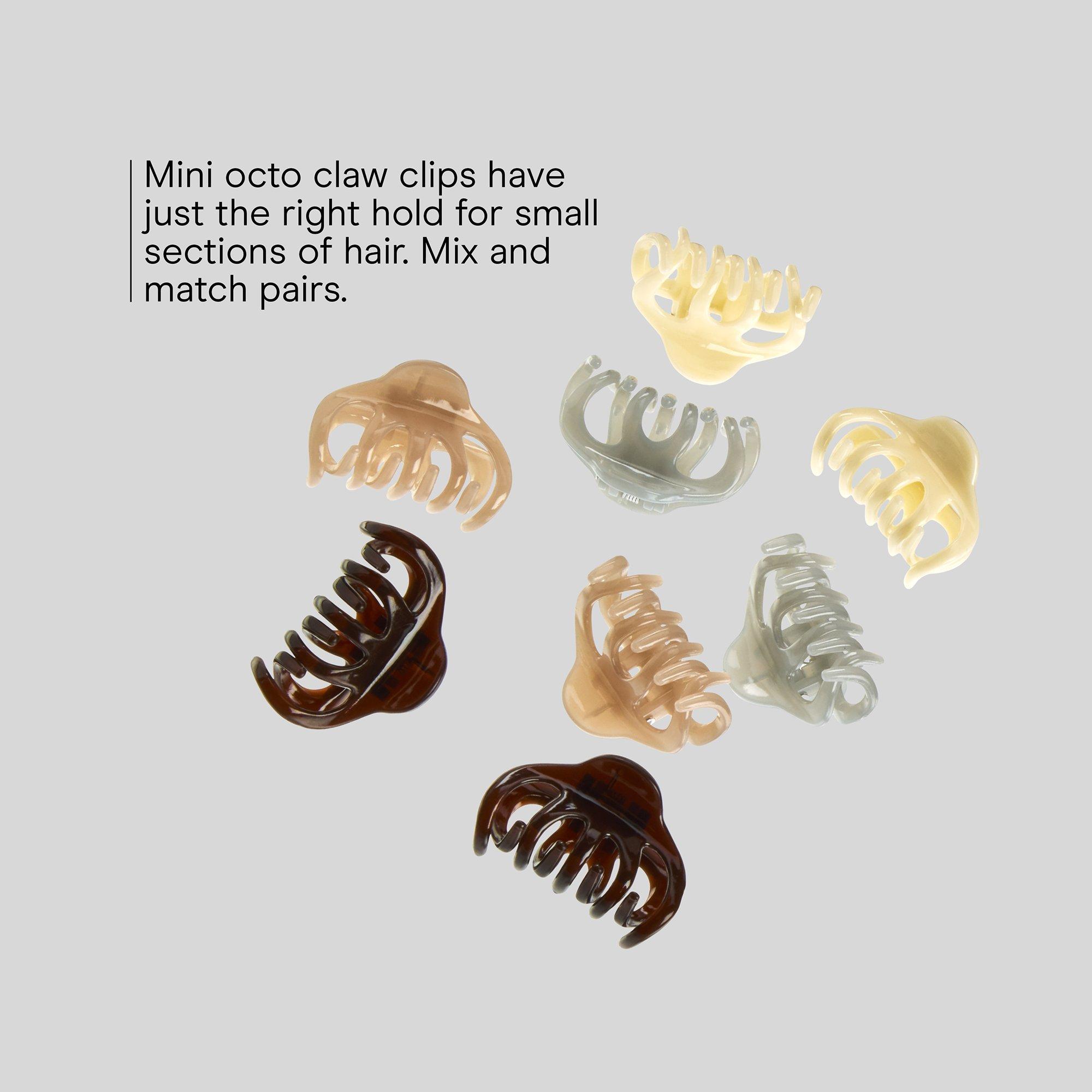 Eight mini clips with major grip. Conair chic brown, gray, light pink, and mauve claws lock small sections in place for effortless all-day hold. Mix, match, and elevate any updo with bold, smart style.