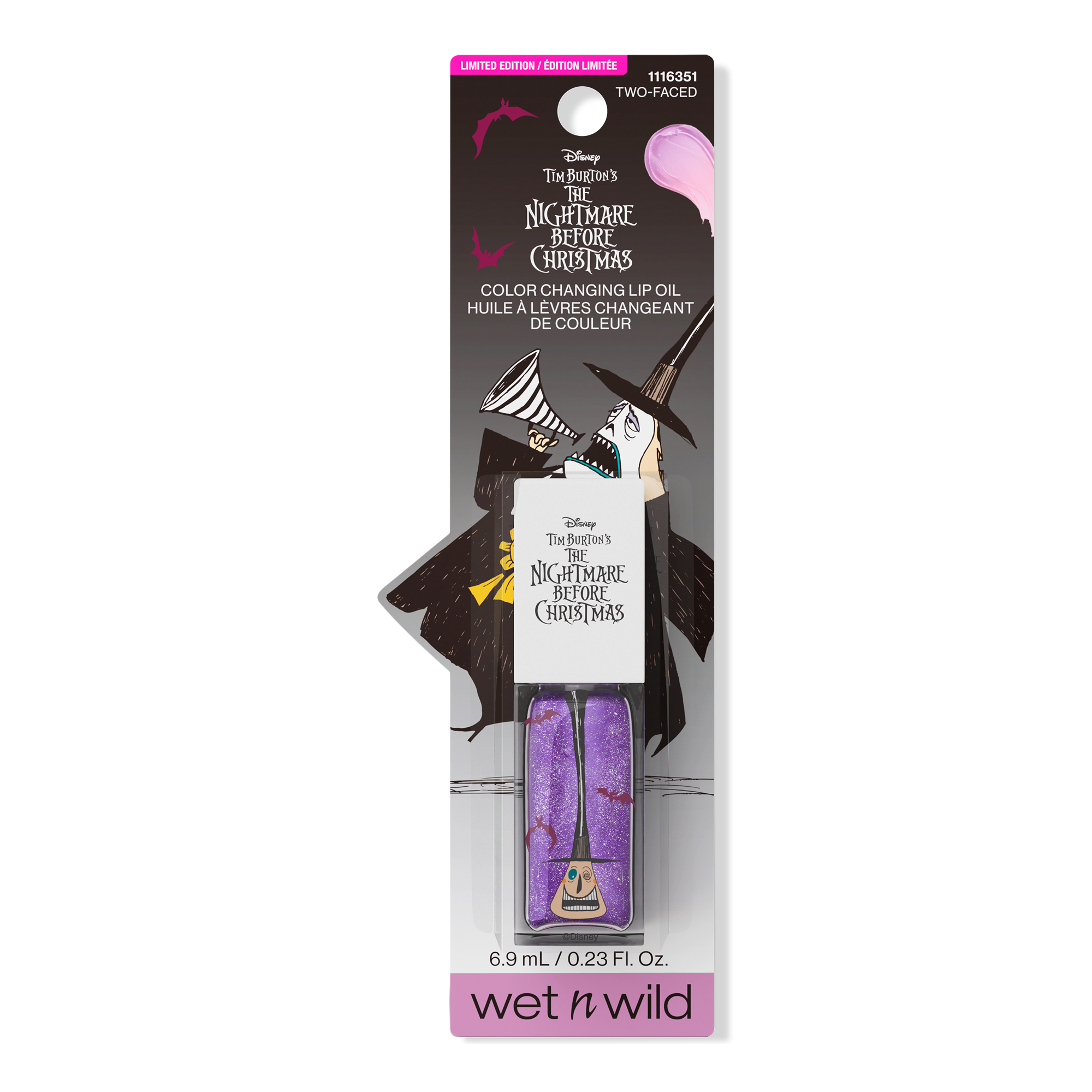 Is this real or is it a dream? The Wet N Wild Nightmare Before Christmas Two Faced Color Changing Lip Oil formula is infused with pH-activated moisturizing ingredients.