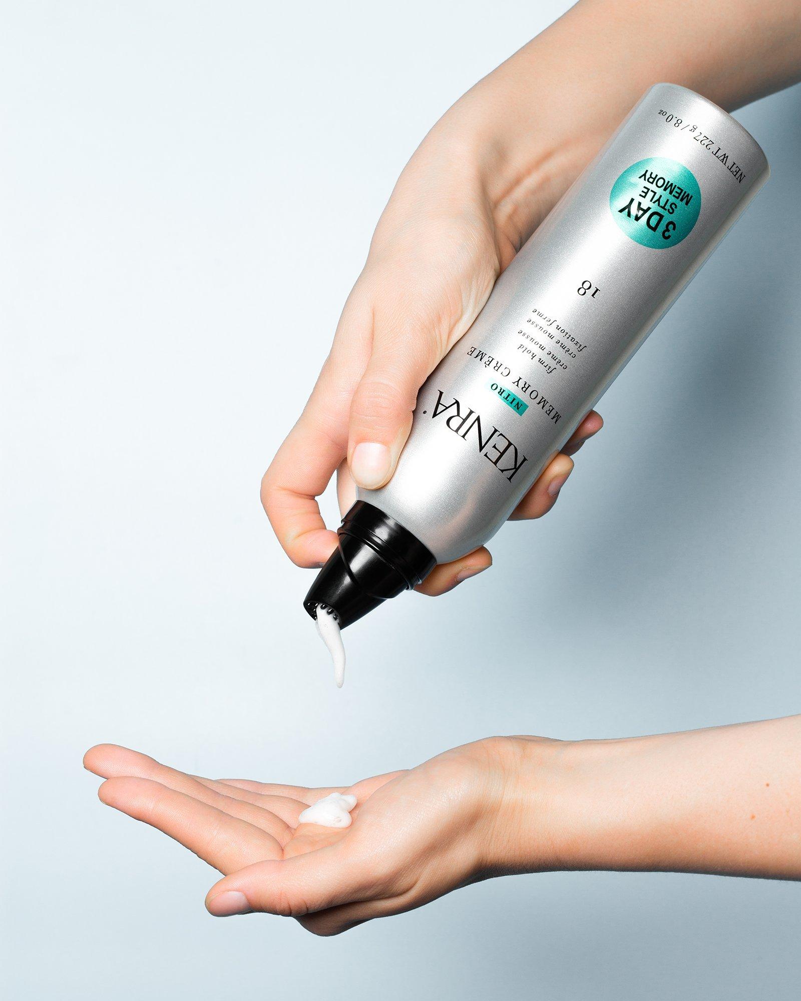 Kenra Nitro Memory Crème 18 is the first nitrogen propelled mousse creating a unique & ultra smooth crème consistency that allows for 3 days of style memory. Nitrogen technology provides a workable, no stick application with an even hold.