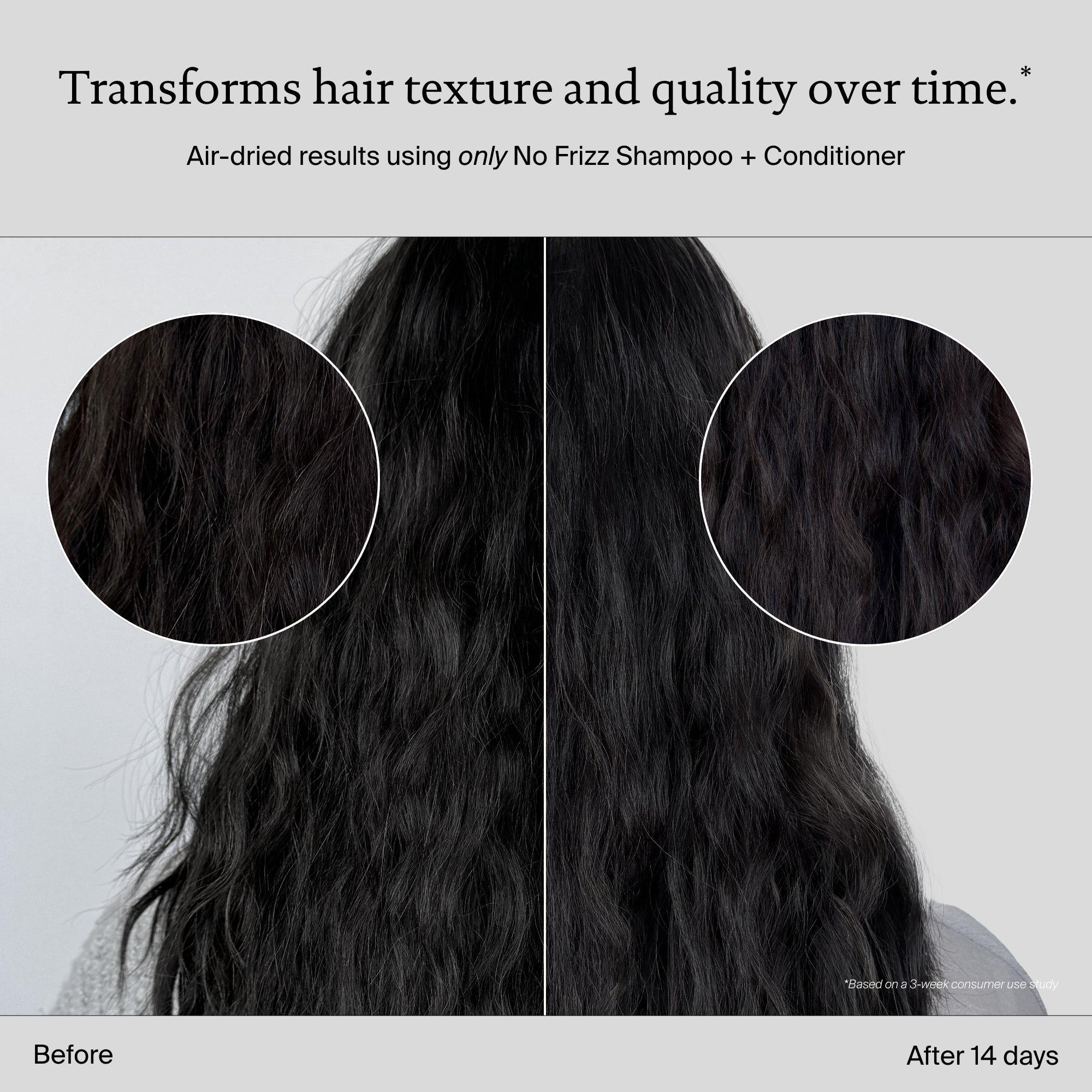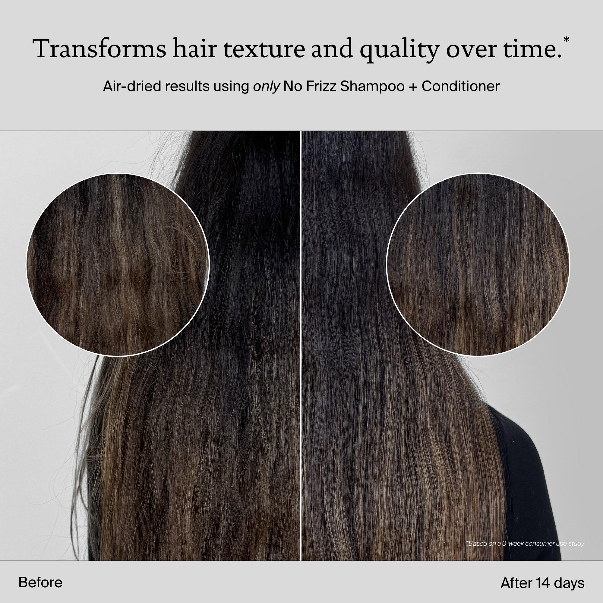 • **No Frizz Shampoo + Conditioner vs. untreated