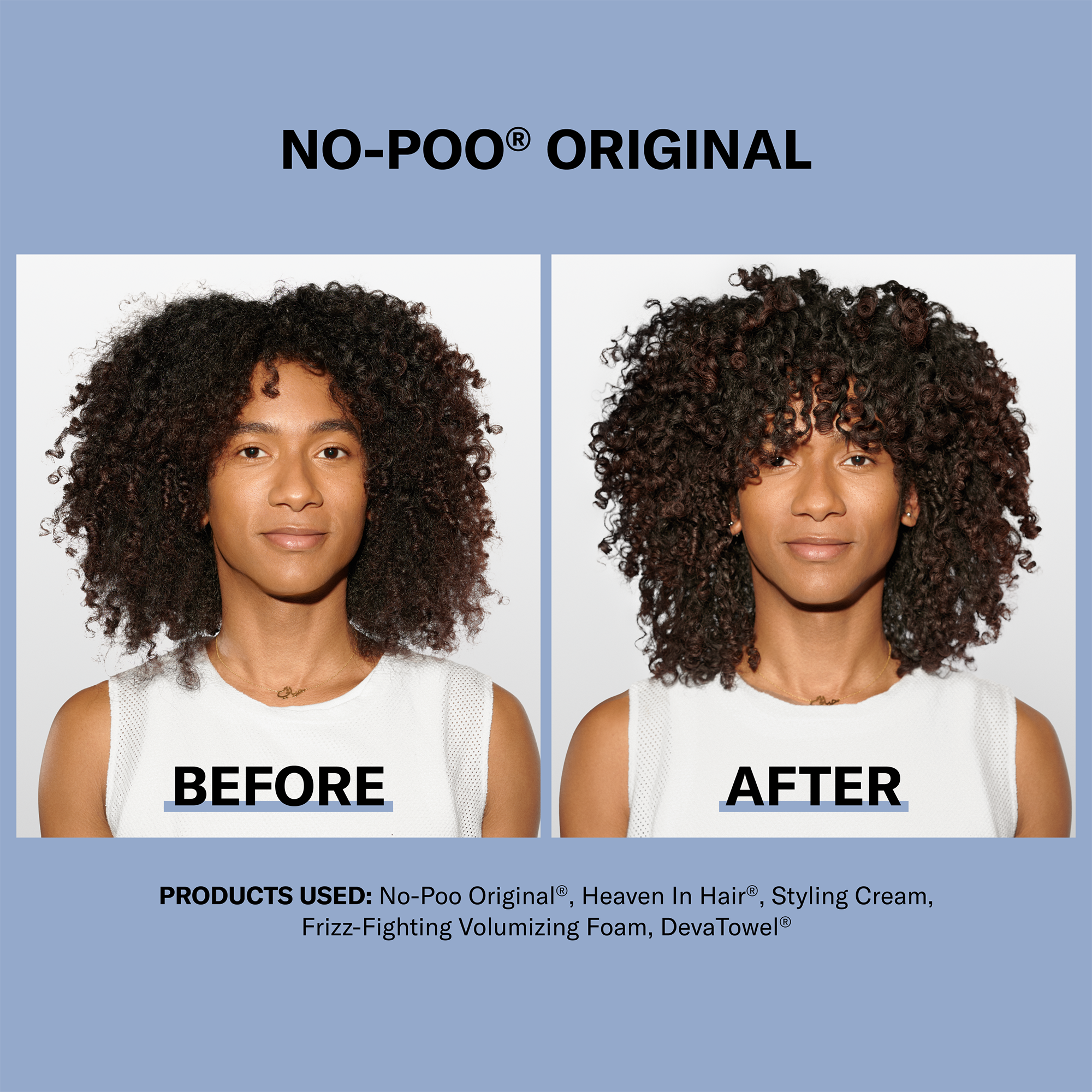 If you have dry, medium to coarse curls, DevaCurl's NO-POO ORIGINAL Zero Lather Cleanser For Rich Moisture, with its rich moisture preserving blend, will leave them shiny, bouncy and hydrated.