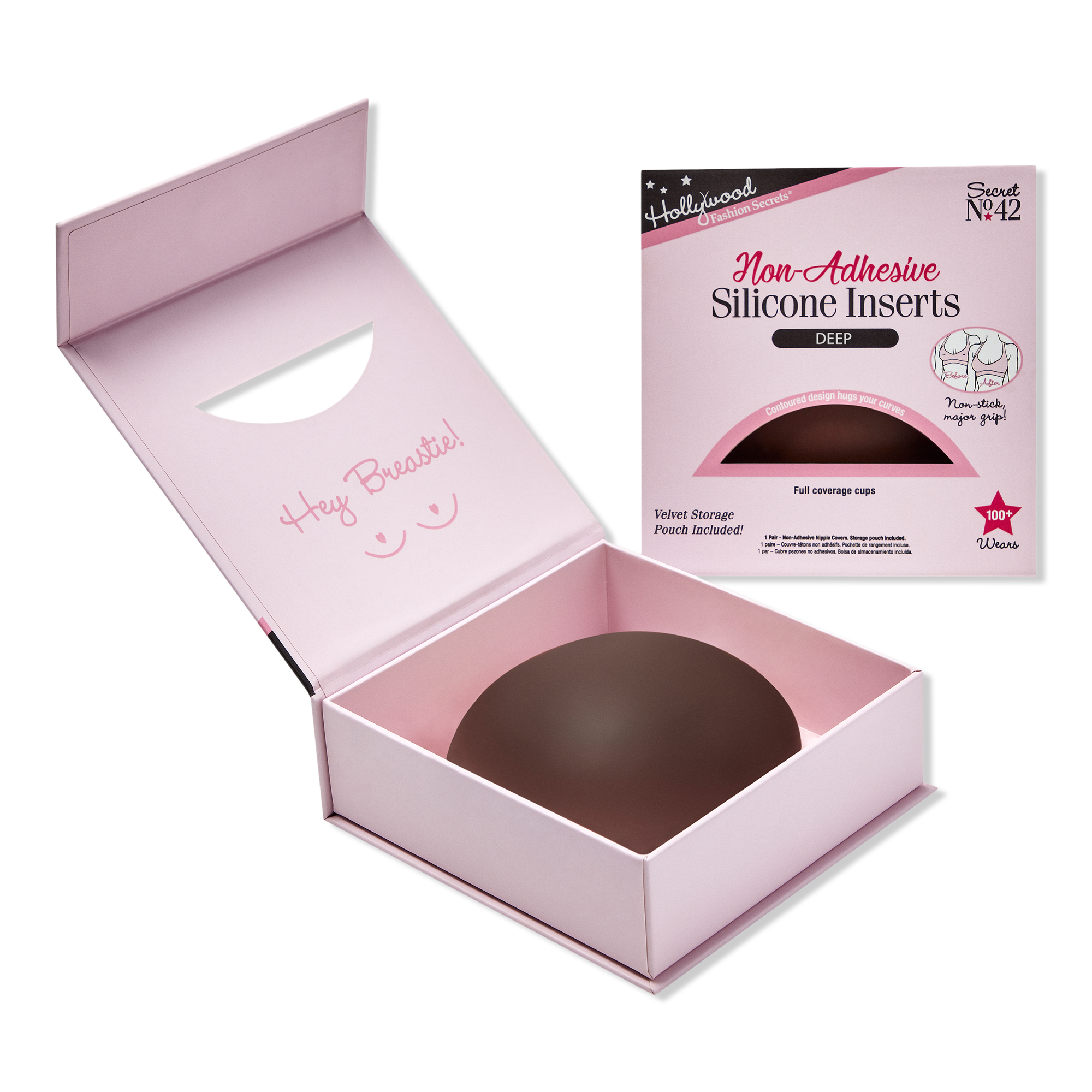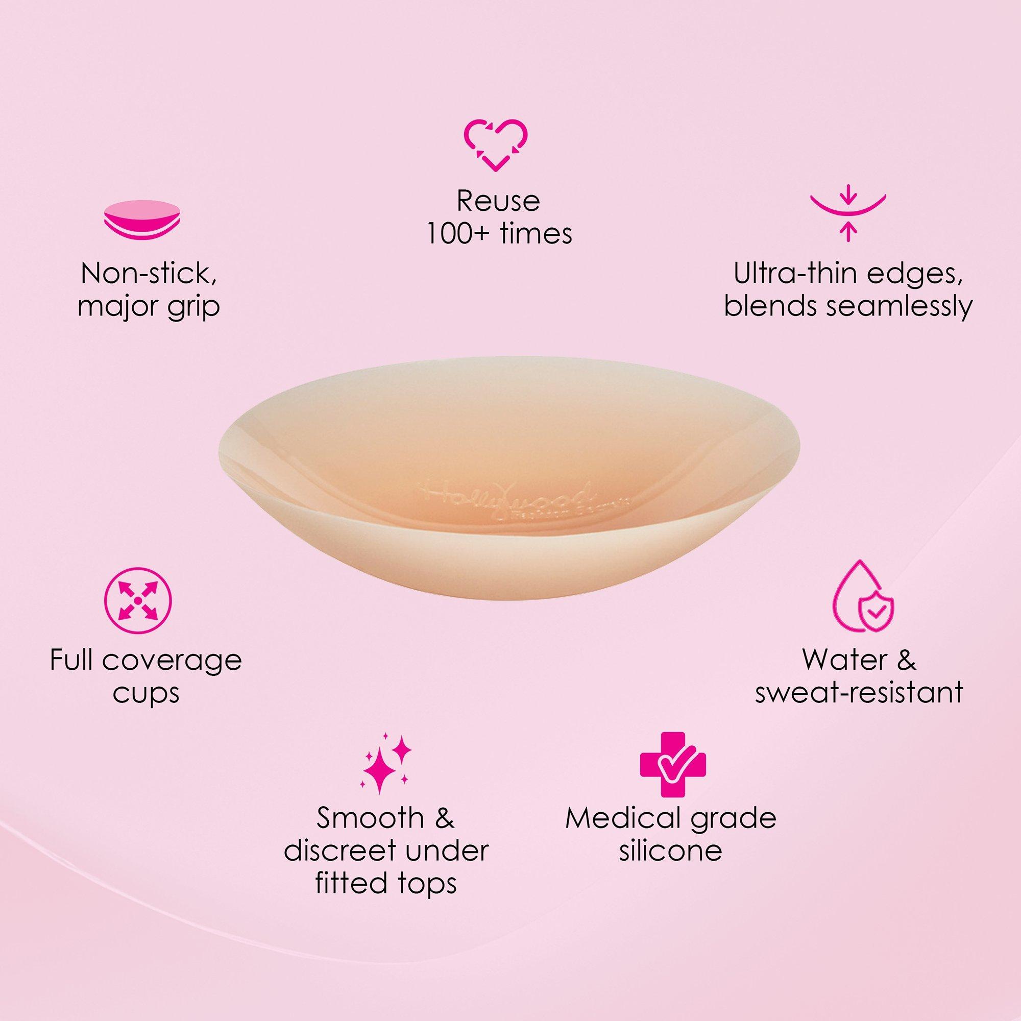 Hollywood Fashion Secrets Non-Adhesive Silicone Inserts hold to your curves with body heat instead of adhesive! These water- and sweat-resistant, comfortable nipple covers are perfect for workout ‘fits, swimwear or everyday wear. Discreet, reusable up to 100x, and easy to clean.