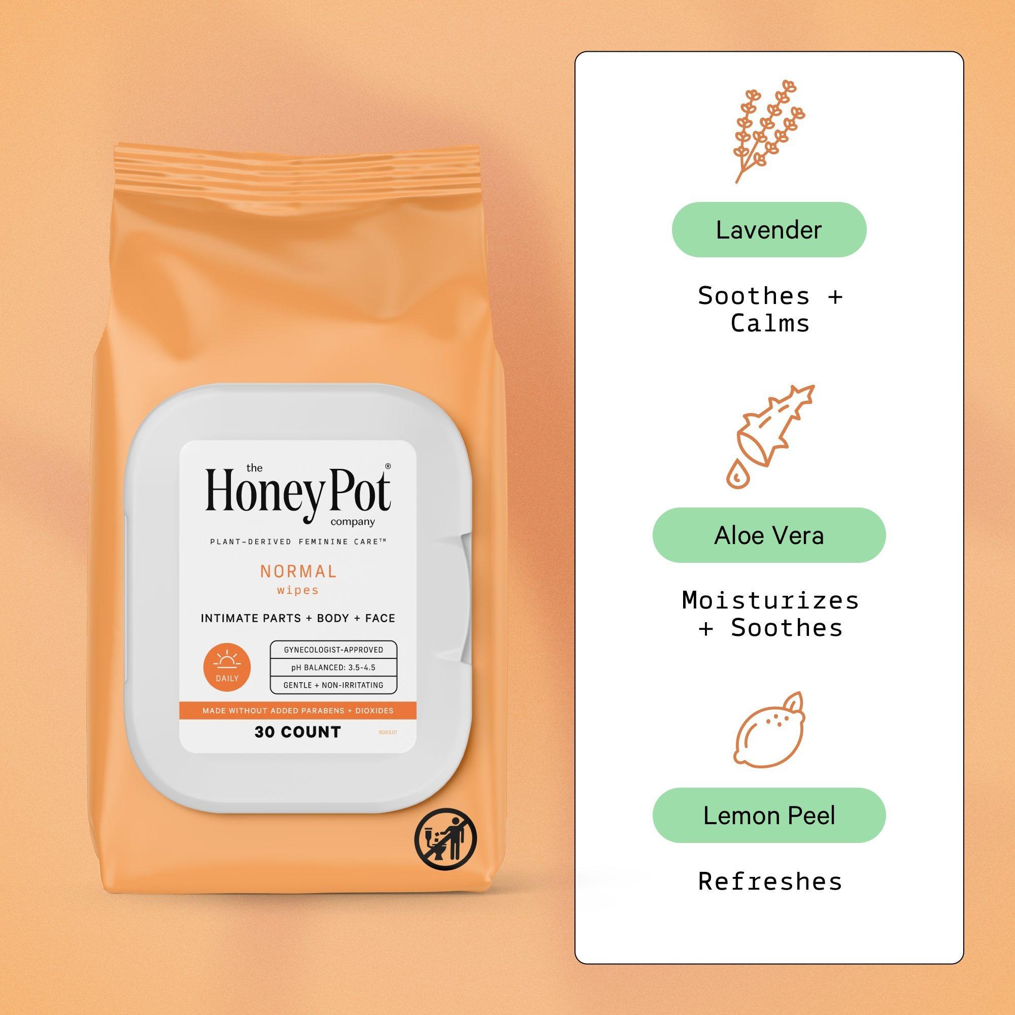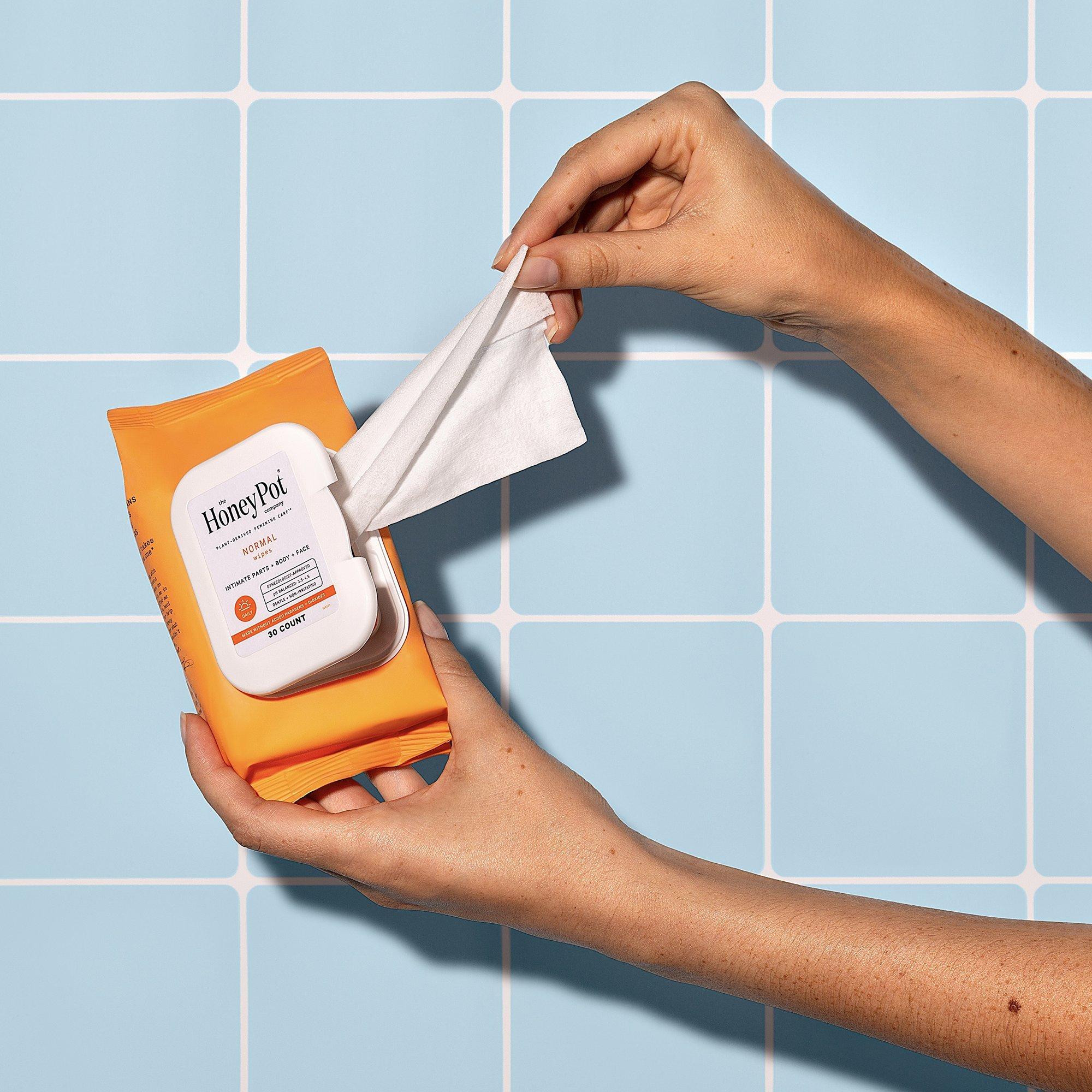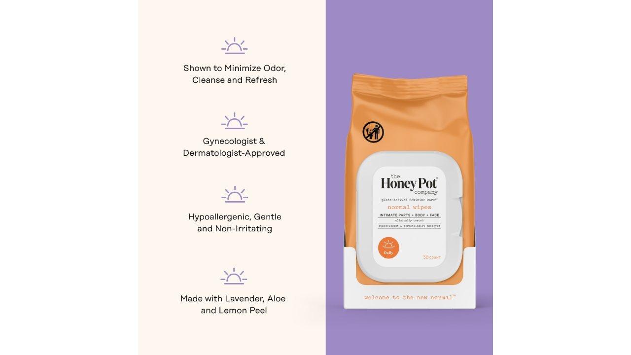 Kiss feeling dry goodbye with The Honey Pot's Normal Daily Feminine Cleansing Wipes. Help maintain your vaginal pH range in one quick swipe.