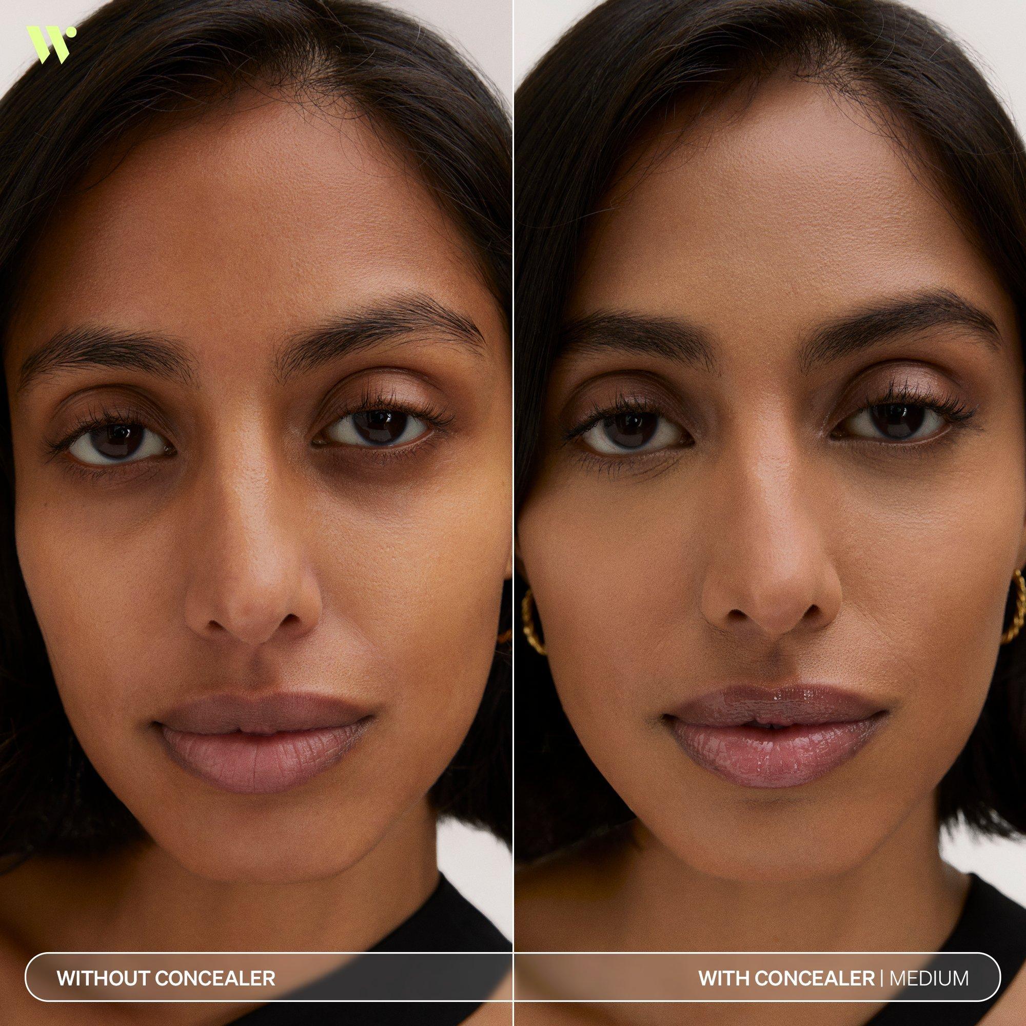 TO COVER AND BRIGHTEN UNDER EYES: Select 1-2 shades lighter than your skin tint shade. Use the applicator to dispense 1-3 dots of product onto skin. The flexible, flat doe foot tip allows for precise application onto creases and high points. Use fingertips or a brush to tap until blended.