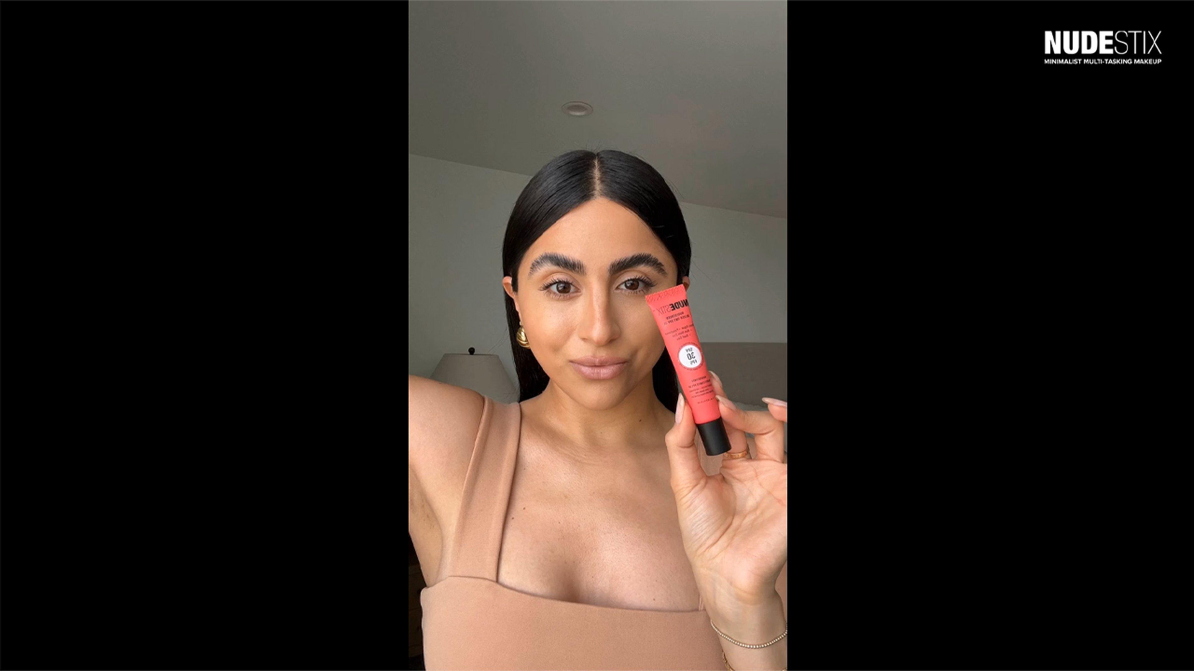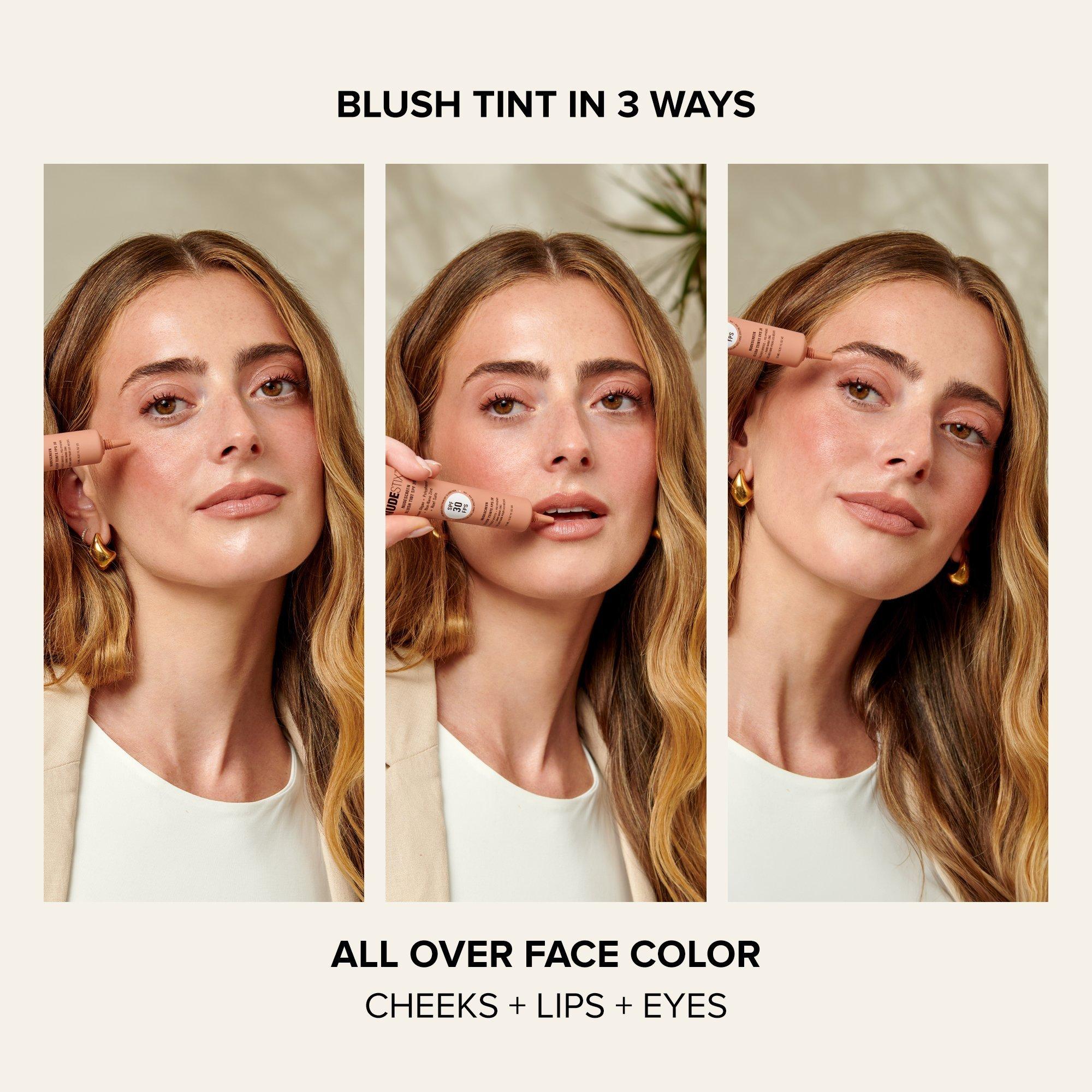 NUDESTIX Nudescreen Blush Tint SPF 30 multi-tasks as a clean, naturally tinted liquid blush color for cheeks, lips and eyes that is lightweight and hydrating