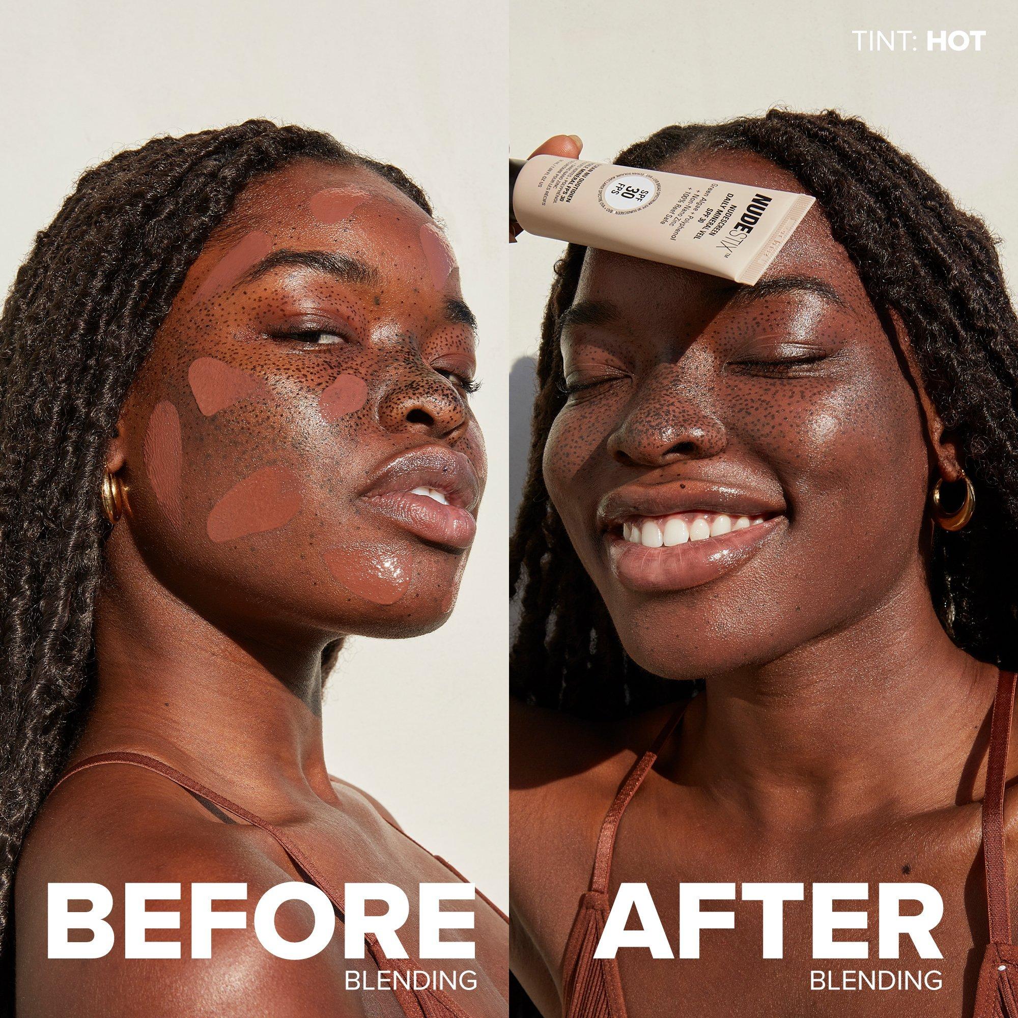 Pro Tip: Use shades Warm and Hot on decolletage and legs to bronze and protect skin. Patch test prior to use is advised.