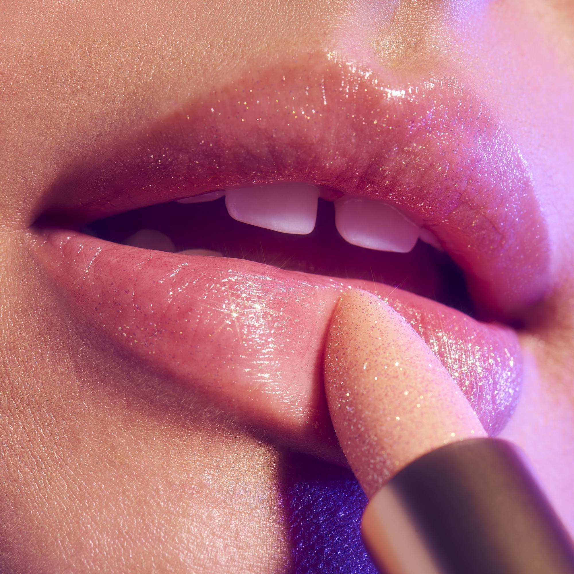 Swipe on shimmer balm in one stroke, starting in the middle of your lips and moving out towards the corners.