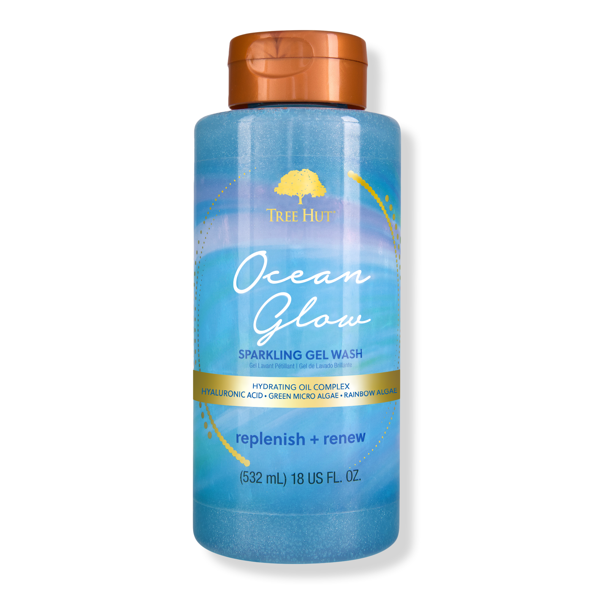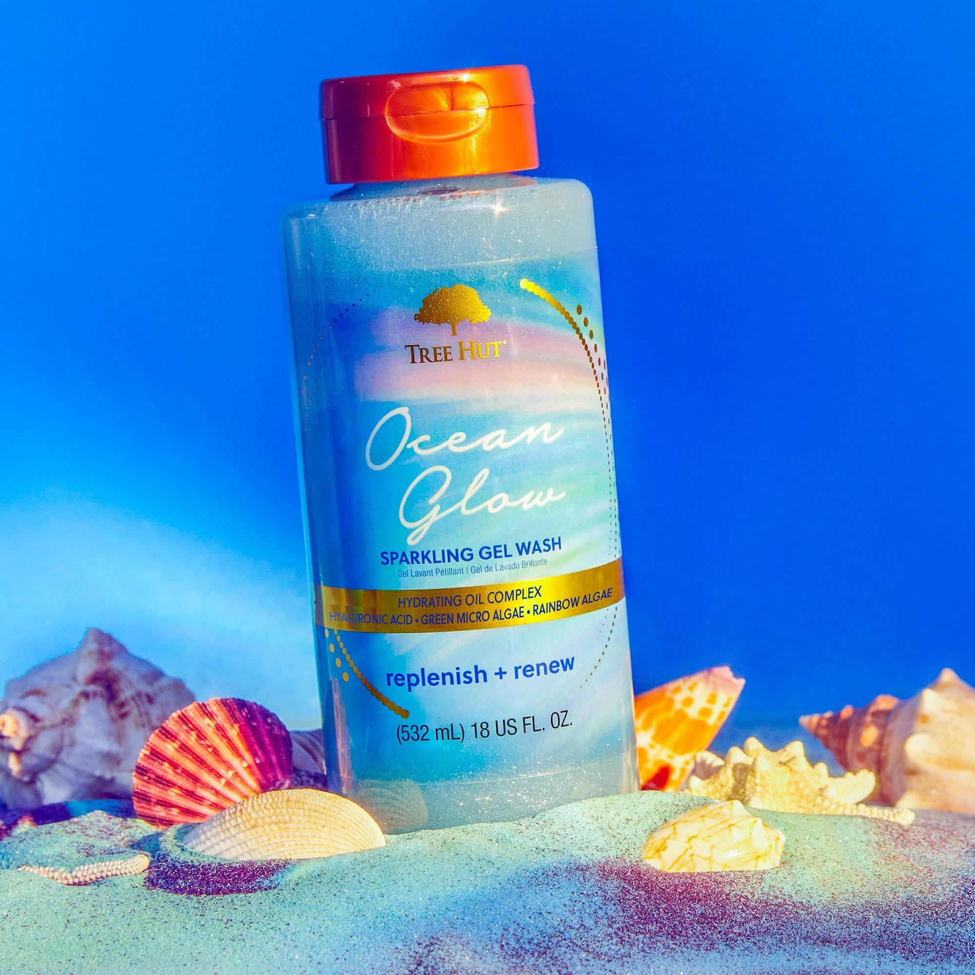 Tree Hut Exclusive Ocean Glow Hydrating Foaming Gel Body Wash features Hyaluronic Acid, Green Micro Algae and Rainbow Algae for an extra moisture boost. The serene functional fragrance promotes feelings of renewal and restoration: the perfect addition to your wellness ritual.
