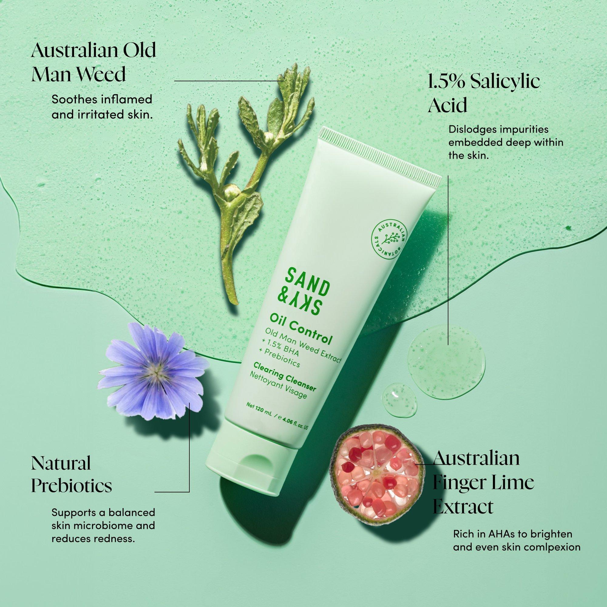 A pH-balanced clearing cleanser with 24-hour soothing action that unclogs pores and removes makeup, oil and impurities. Australian Old Man Weed and Finger Lime Extract reduce skin inflammation by 29% for a clearer, calmer complexion.