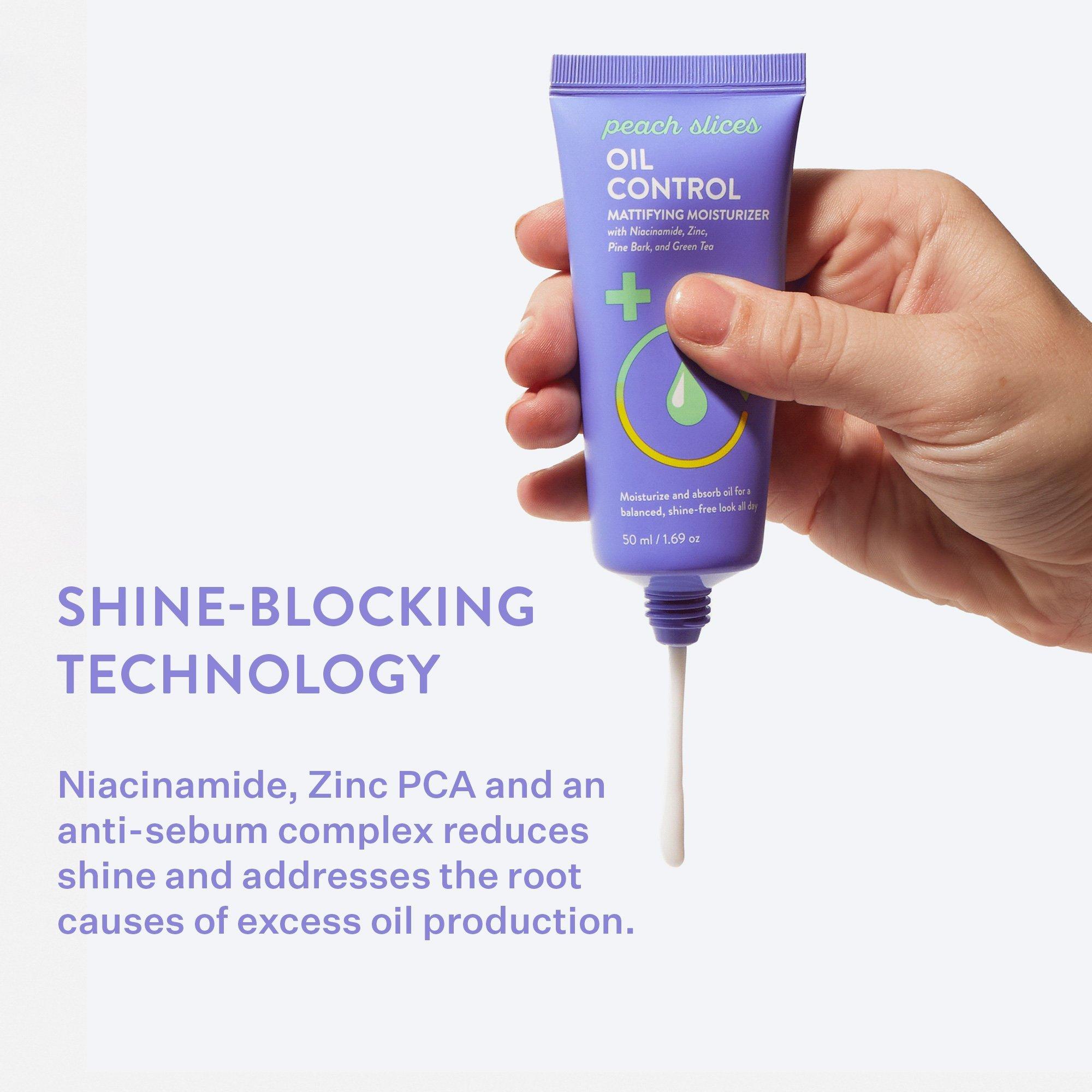 Peach Slices Oil Control Mattifying Moisturizer leverages breakthrough shine-blocking technology to minimize signs of excess oil production, mattify shine, and nourish skin.