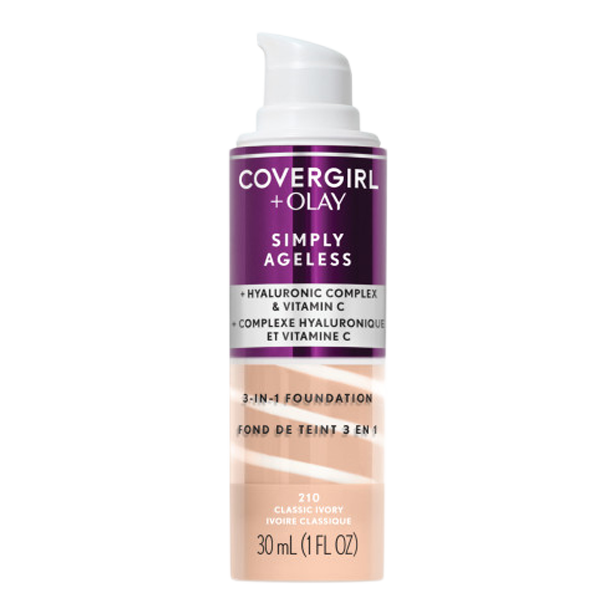 Give your skin a youthful glow with COVERGIRL + Olay Simply Ageless 3-in-1 Liquid Foundation. This anti-aging foundation plumps up skin to instantly reduce the appearance of wrinkles for a radiant complexion. Hyaluronic complex & vitamin C deliver firming hydration to keep your skin looking healthy.