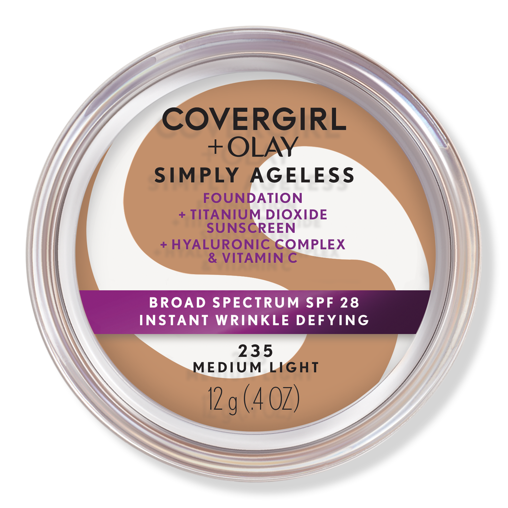 COVERGIRL + Olay Simply Ageless Instant Wrinkle-Defying Foundation minimizes the look of wrinkles and provides a youthful glow. Skin looks healthier and more hydrated thanks to the #1 anti-aging formula with hyaluronic complex and vitamin C, and SPF 28 helps protect from sun damage.
