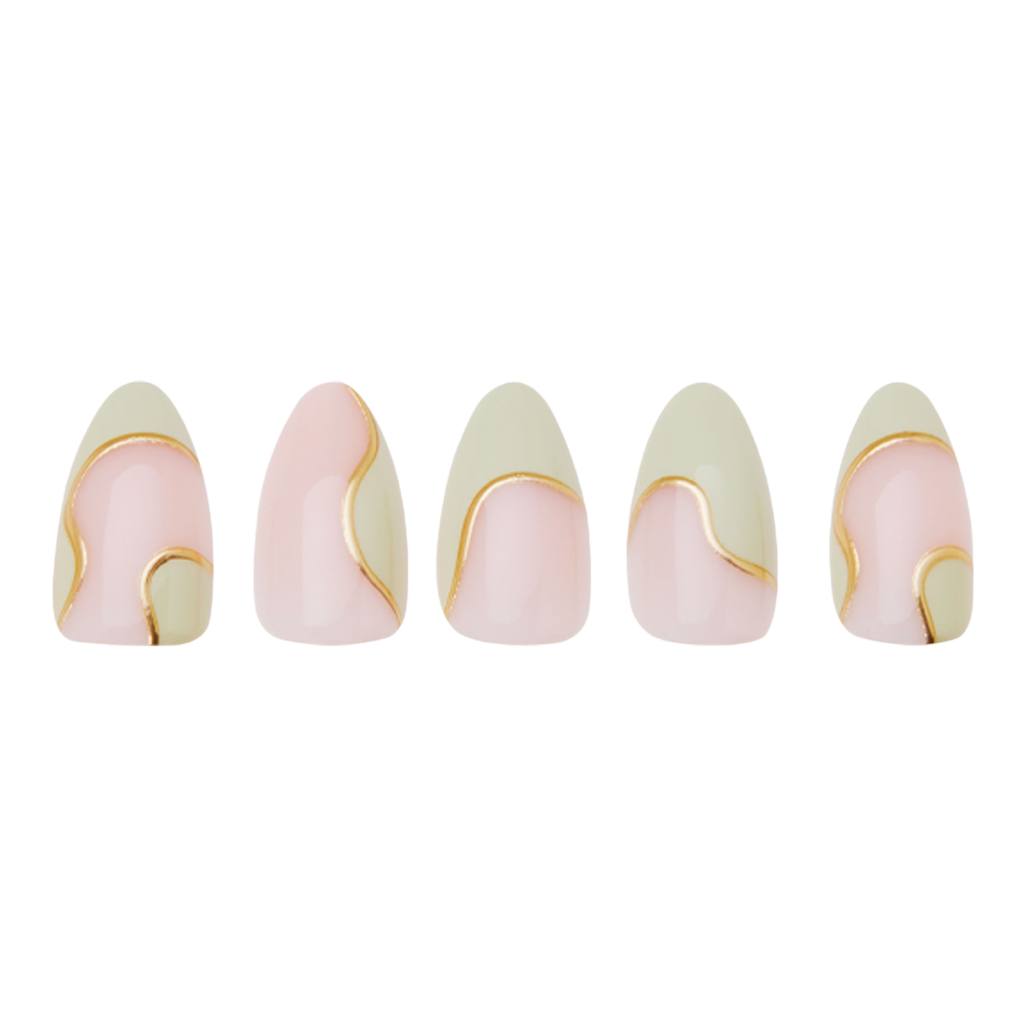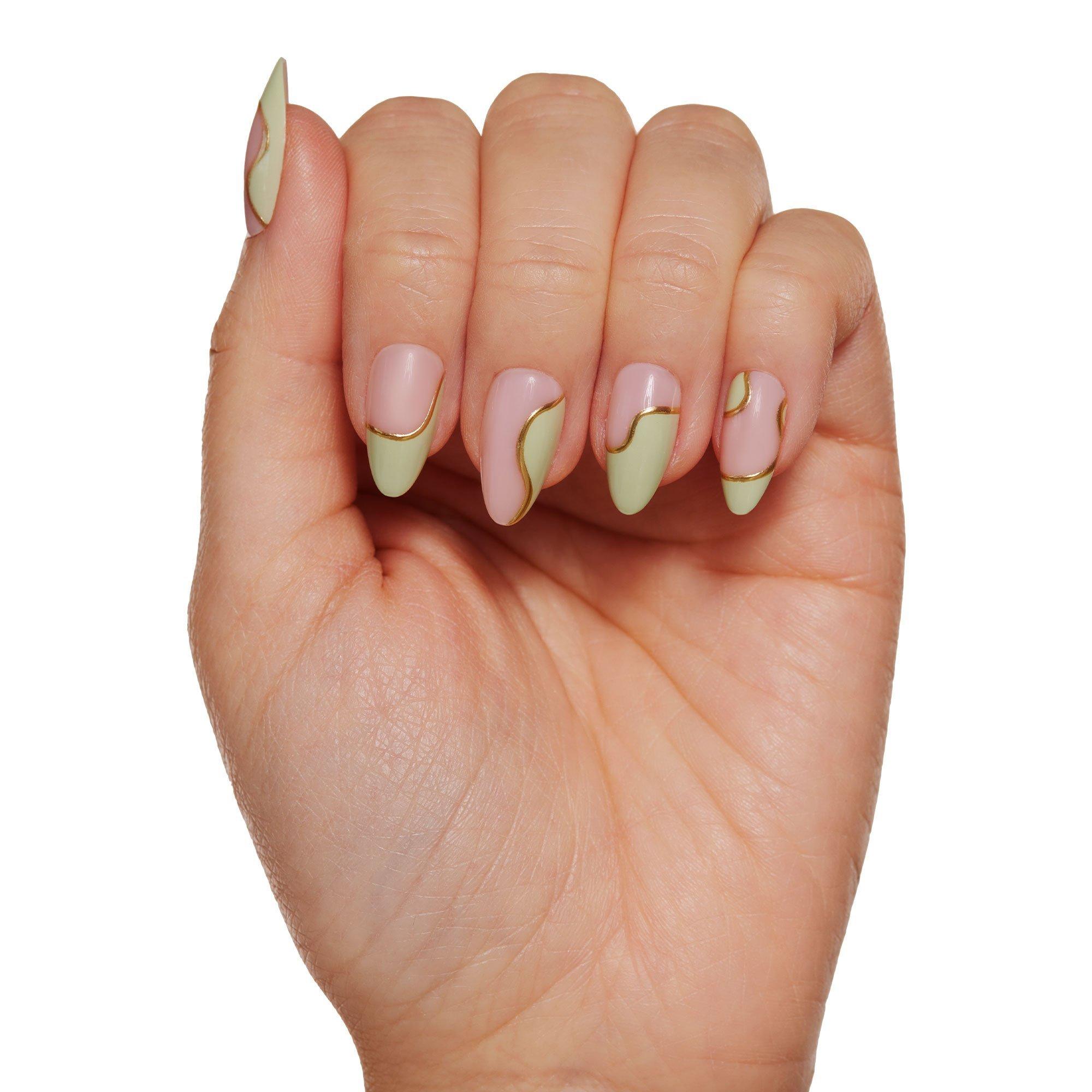 Elevate your everyday nail game with the Olive You Nail Set. This super-stylish design features a semi-transparent base with an abstract olive green & foil trim along each nail. Plus, Glamnetic's popular short almond shape offers a trendy, yet wearable look that's perfect for dressing up or down!
