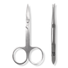 Brush brows to the desired shape and trim any hairs that extend above the brow line. Tweeze strays in the direction of hair growth to avoid breakage.