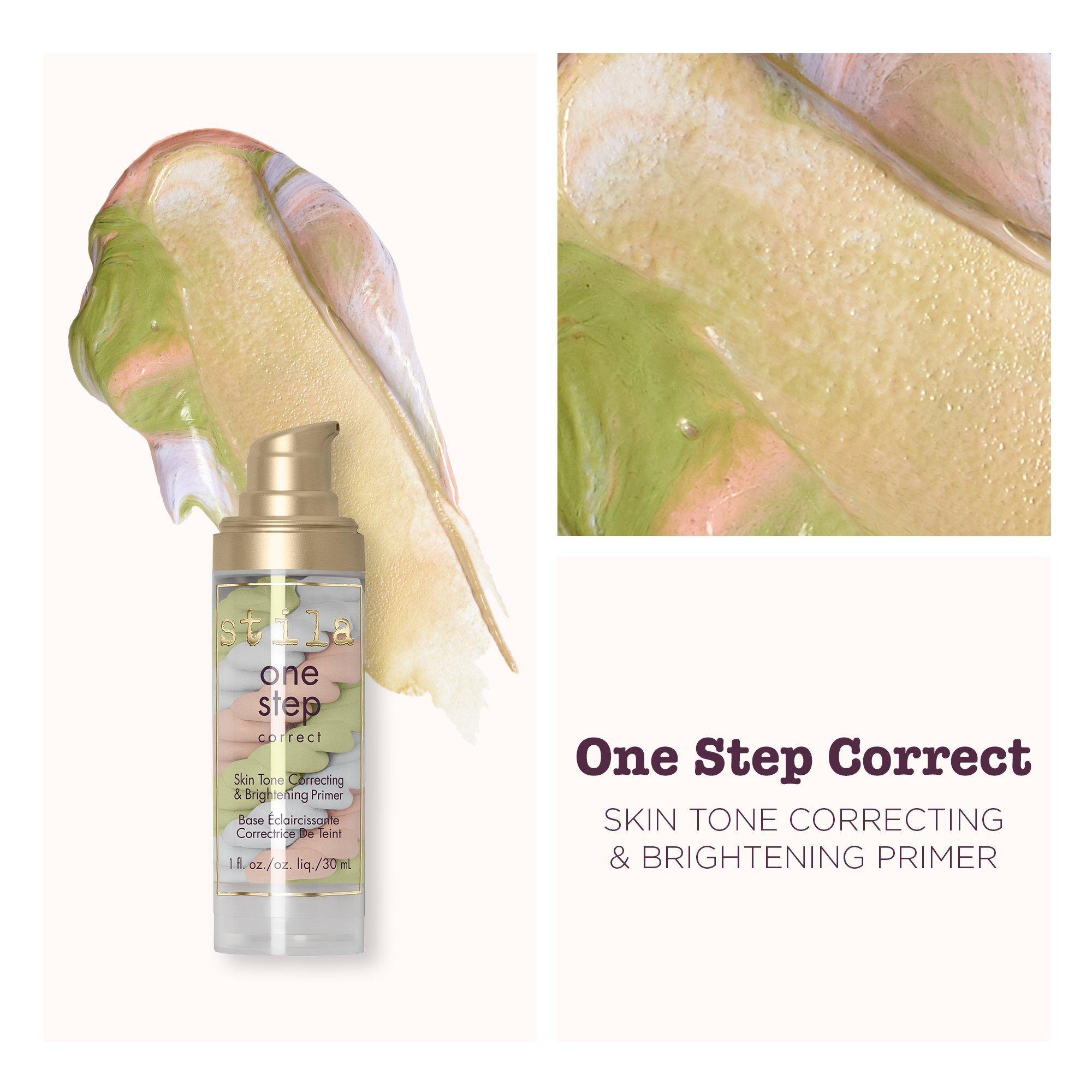 Swirl you way to perfect skin in one step! Stila's One Step Correct Brightening & Correcting Primer, an innovative, triple-swirled helix serum, instantly color corrects, brightens and covers skin imperfections for a flawless face with no fuss.
