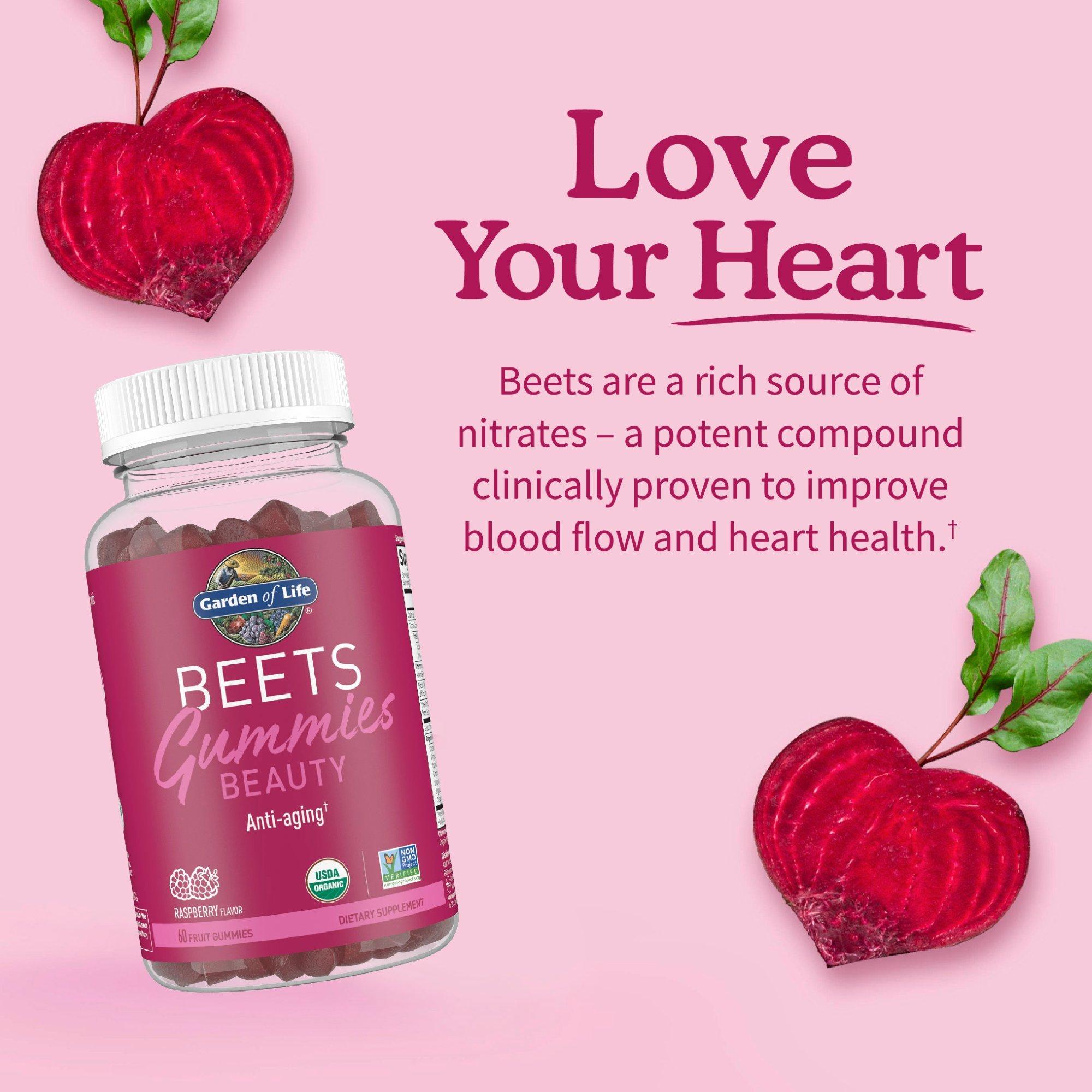 Garden of Life Beets Gummies provide essential vitamins, minerals, polyphenols and powerful antioxidants. These anti-aging fruit gummies are packed with antioxidants to support youthful skin.†