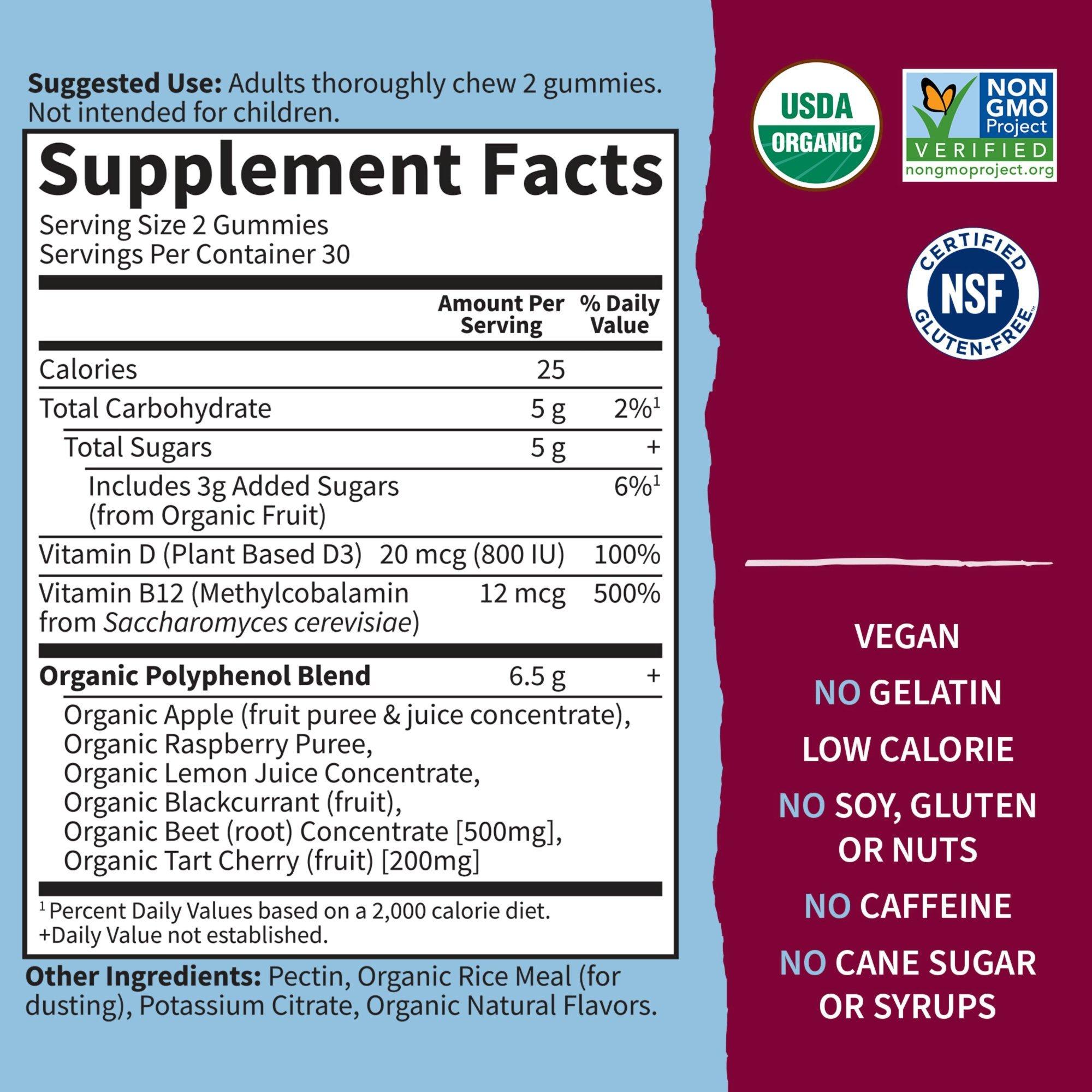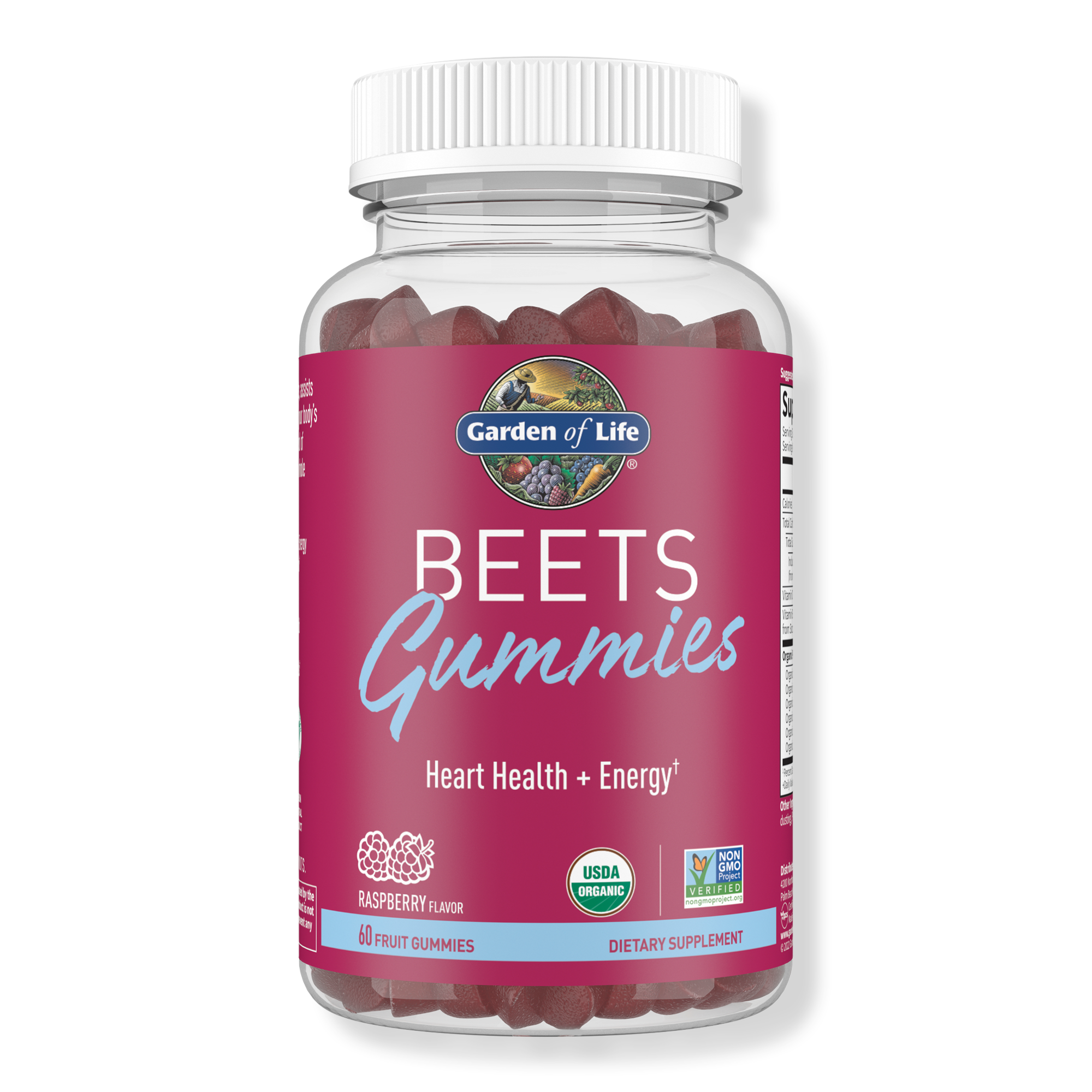 Garden of Life Beets Gummies provide essential vitamins, minerals, polyphenols and powerful antioxidants. These heart- and energy-supporting nutrients is offered in a yummy raspberry flavored gummy.
