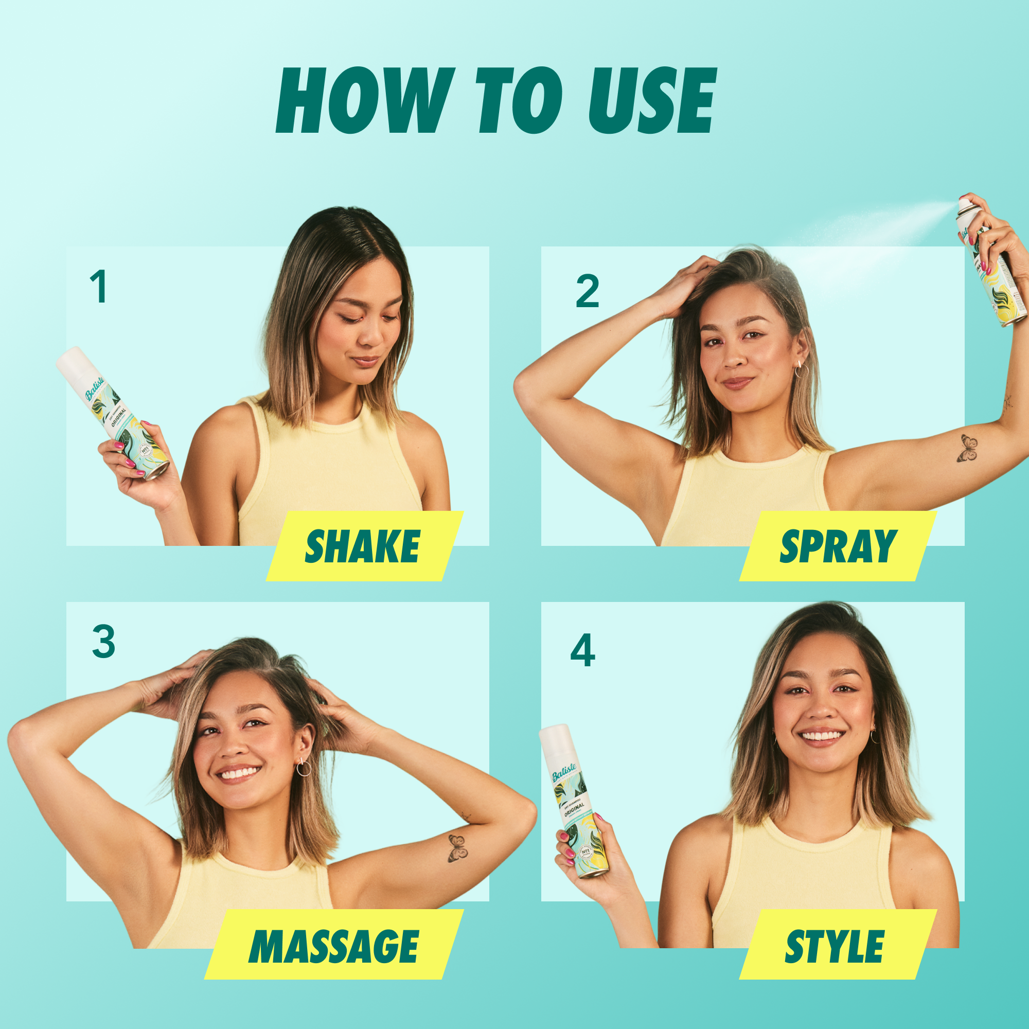 Take your hair from flat to fab with Batiste Original Dry Shampoo - Clean & Classic. The waterless formula targets excess oil and grease at the roots. Just spray in, massage, style, and go. Batiste Dry Shampoo instantly makes your hair feel clean, fresh, with added body and texture.