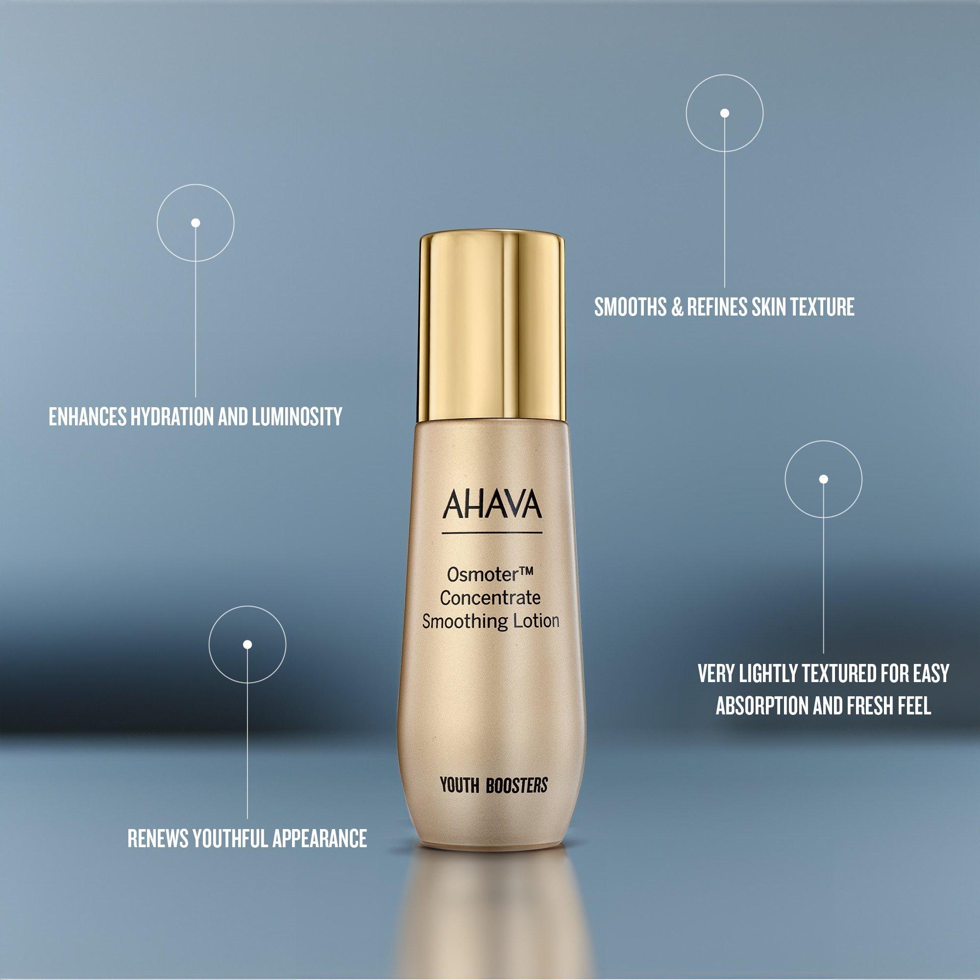This smooth and refreshing Osmoter Concentrate Smoothing Lotion is based on AHAVA's exclusively patented DSO technology: a triple concentration of Osmote, their signature blend of Dead Sea minerals.