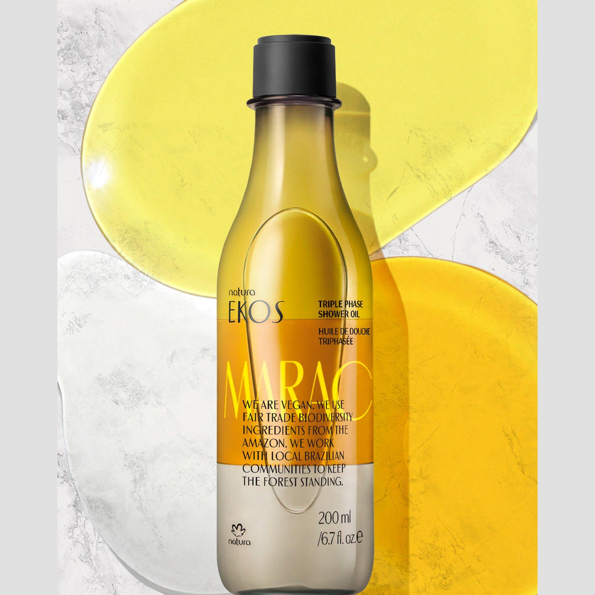 Passion Fruit Triple-Phase Body & Shower Oil hydrates and nourishes skin with maracujá (passion fruit) oil. Its lightweight, fast-absorbing formula softens and revitalizes skin while leaving a subtle fruity scent. Perfect for daily use on body and in the shower for radiant, smooth skin.