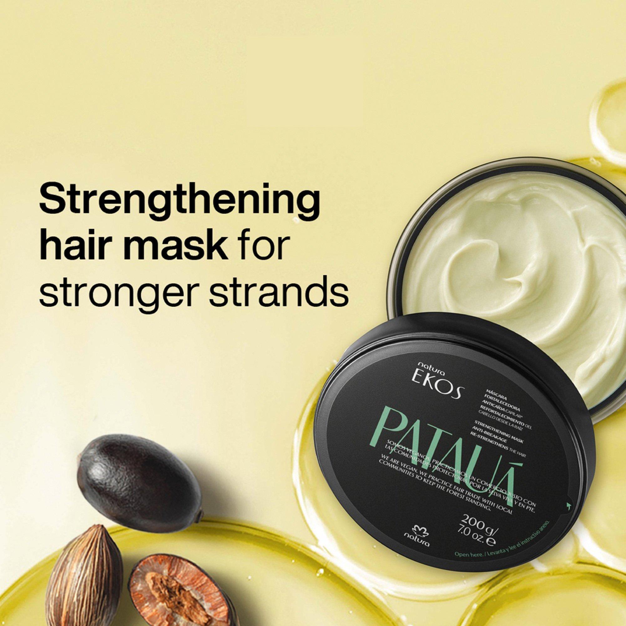 • Made with a 97% natural origin formula, the silicone-free Ekos Patauá Strengthening Anti-Breakage Mask, enriched with raw Patauá oil, actively recovers weakened strands, leaving your hair thicker and with enhanced movement.