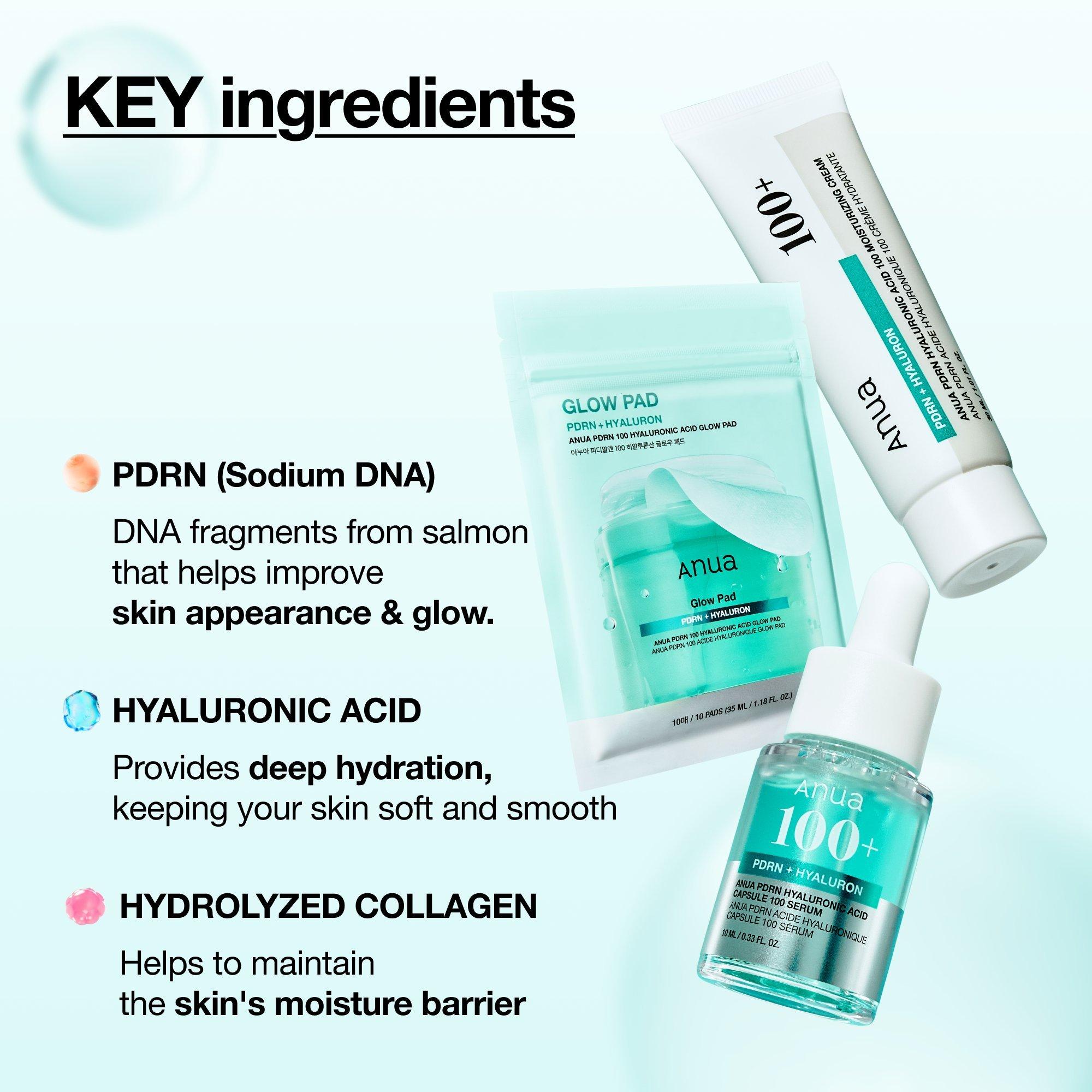 The Anua PDRN Deep Hydration Trio is a 3-step trial kit featuring a toner pad, serum, and moisturizer to help you achieve a glass-skin glow powered by the viral ingredient, PDRN.
