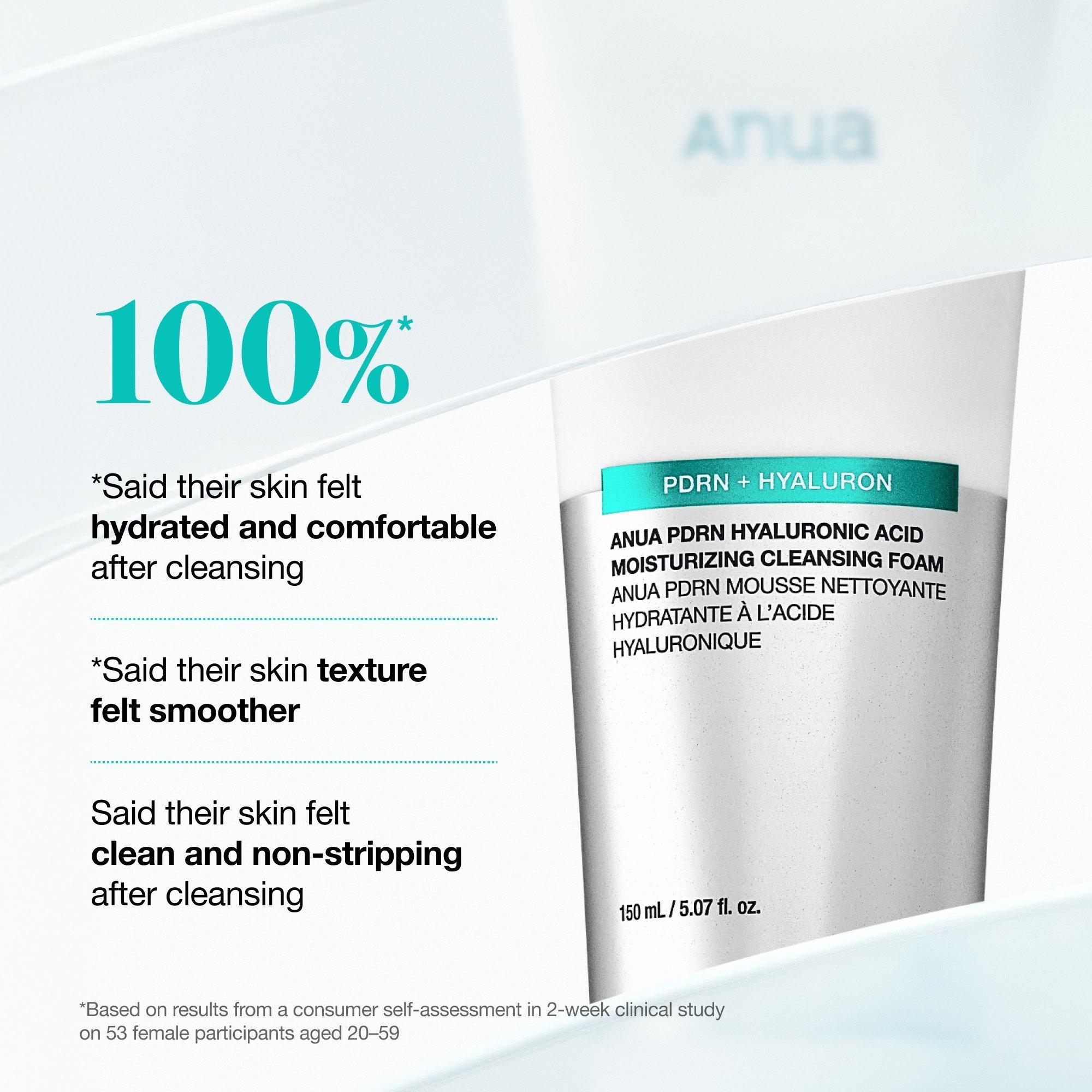 Anua PDRN Hyaluronic Moisturizing Cleansing Foam helps create plumper, more hydrated skin. Its fine micro-bubbles lift away sebum, leaving the skin smooth and soothed.