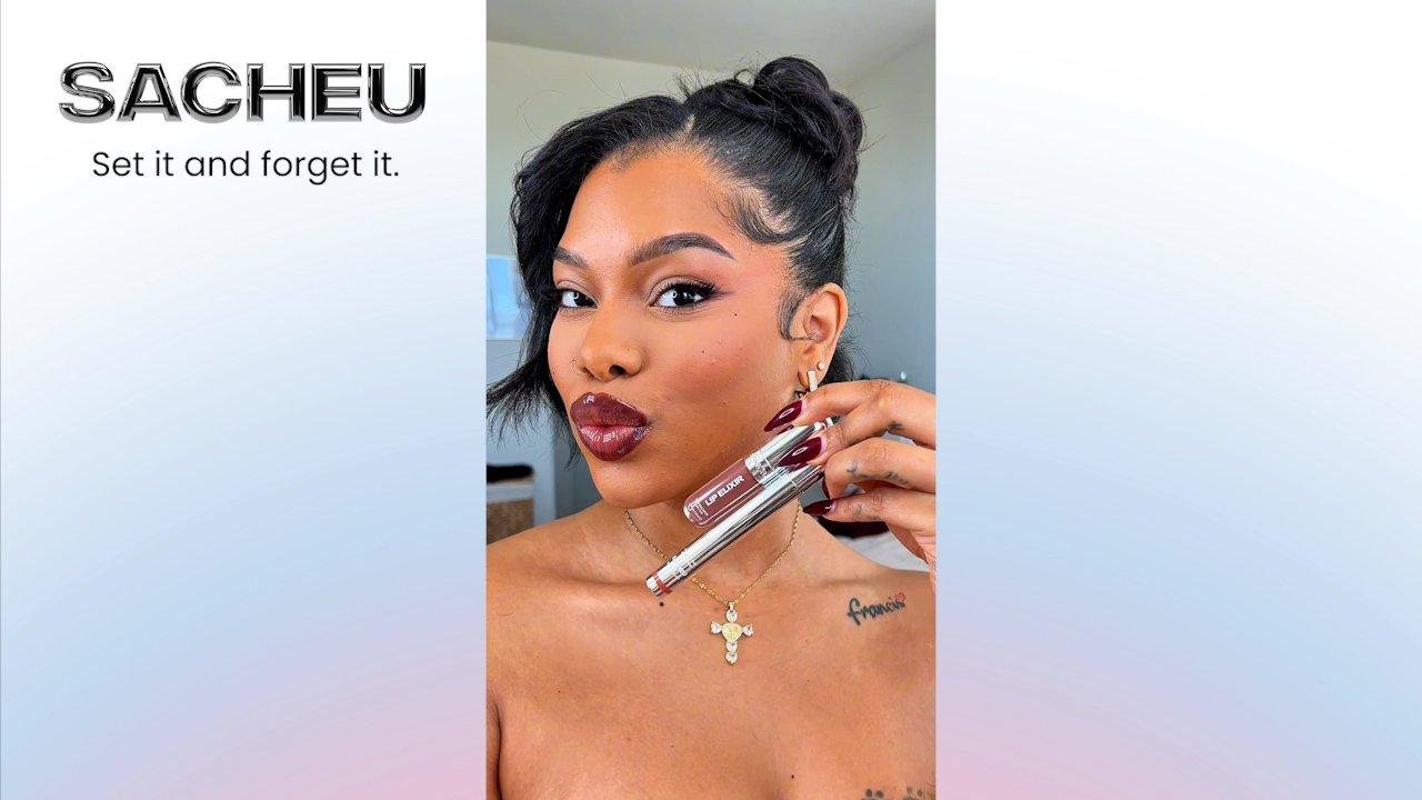 Using the precision-tip applicator, trace along the lip line in an even layer. Leave on for up to 10-15 minutes. After the formula has set, use fingers to slowly peel the film tint off to unveil smudge-proof, long-wear lip color. Apply lip glaze as a topper to complete your Sacheu Lip Liner STAY-N look!
