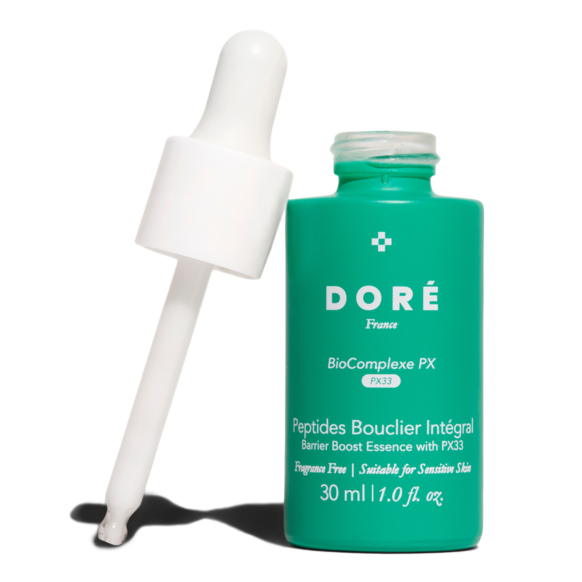 Doré’s Peptides Bouclier Intégral is a barrier-boosting essence that strengthens the skin's resilience and visibly reduces signs of aging. Powered by BioComplexePX with PX33, a peptide-rich complex that locks in moisture and protects skin from irritants. Fragrance-free. Suitable for sensitive skin.