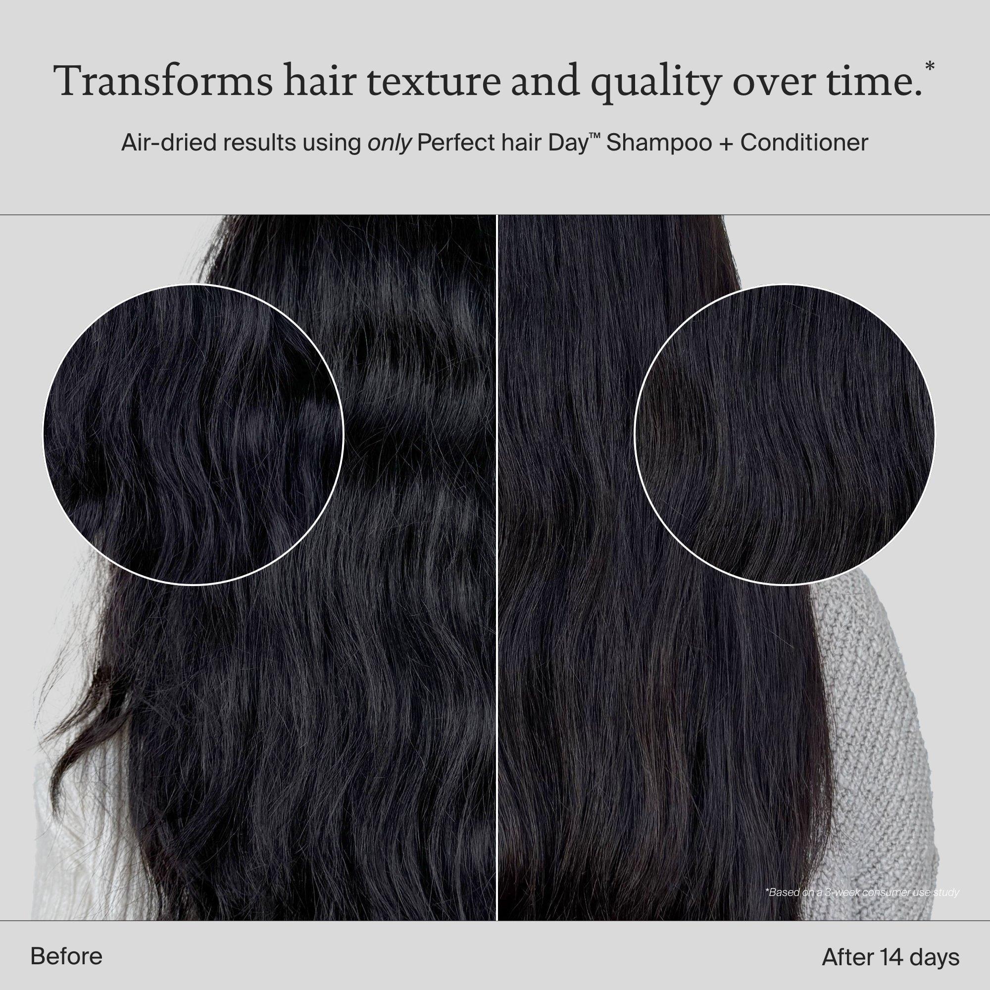Start with Perfect hair Day Shampoo, then apply Perfect hair Day Conditioner, spread through hair, and rinse.