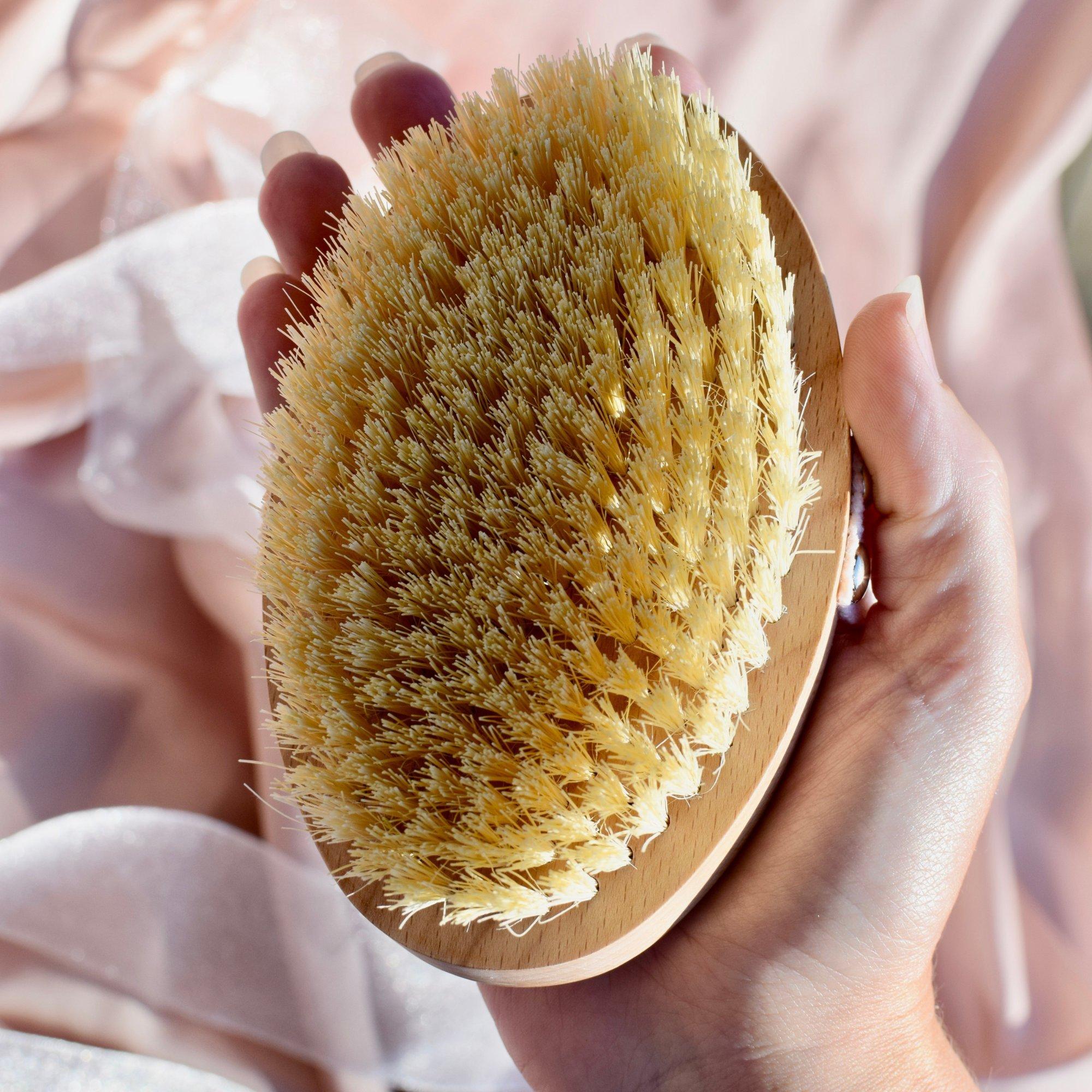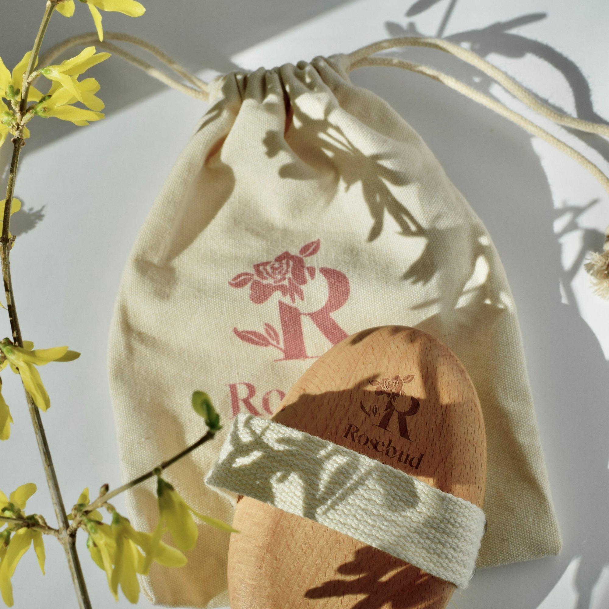 The Perfect Skin Brush features an embossed beechwood handle, vegan sisal bristles, and cotton wrap with carrying sack. Dry brushing boosts circulation, supports lymphatic flow, exfoliates dead skin, and revitalizes your body for radiant, healthy-looking skin.