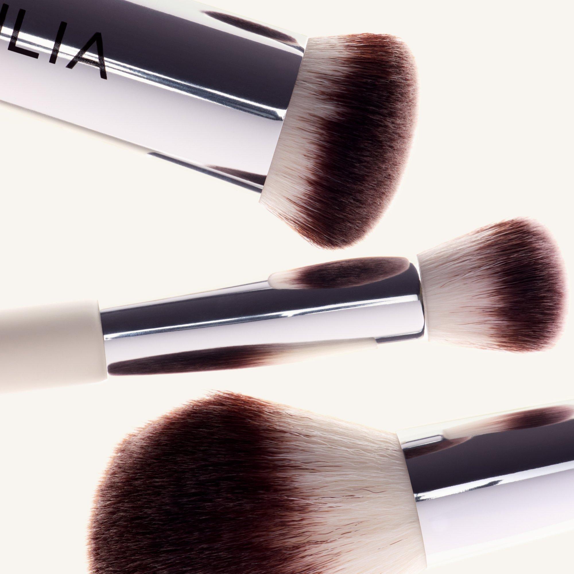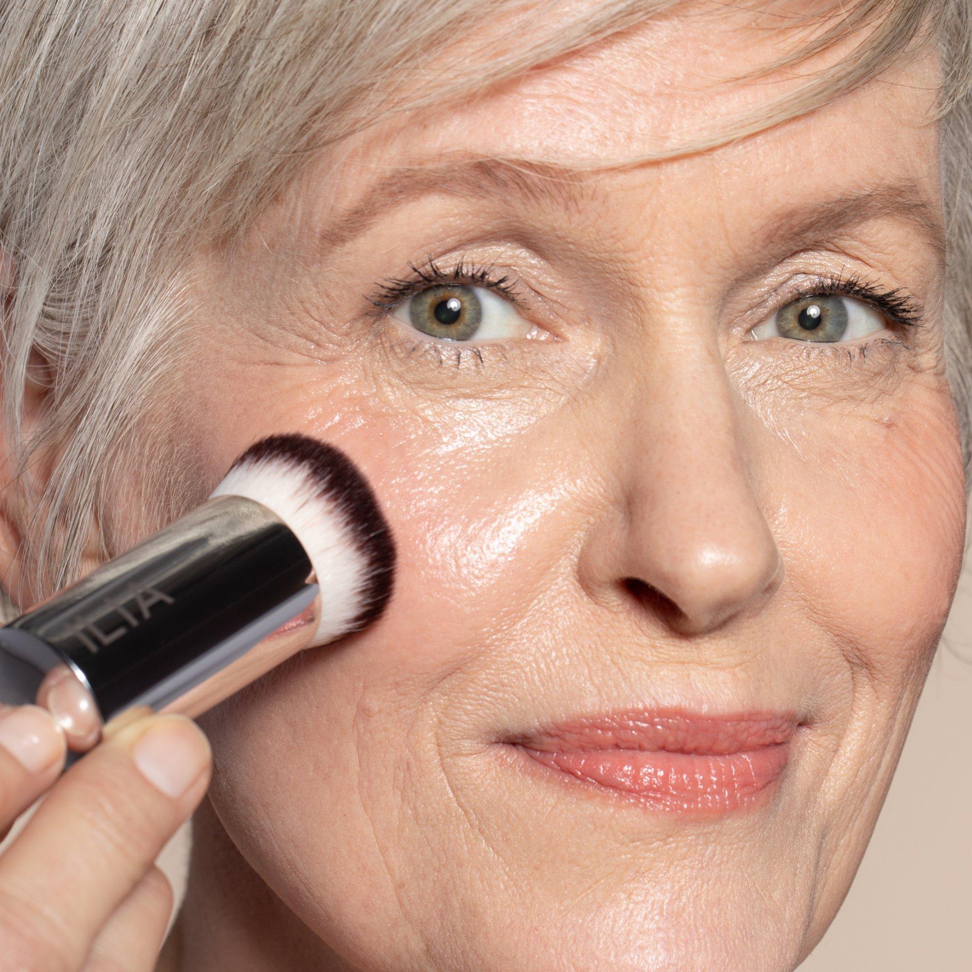 ILIA Perfecting Buff Brush has densely packed bristles to buff and blend both cream and liquid formulas seamlessly into the skin.