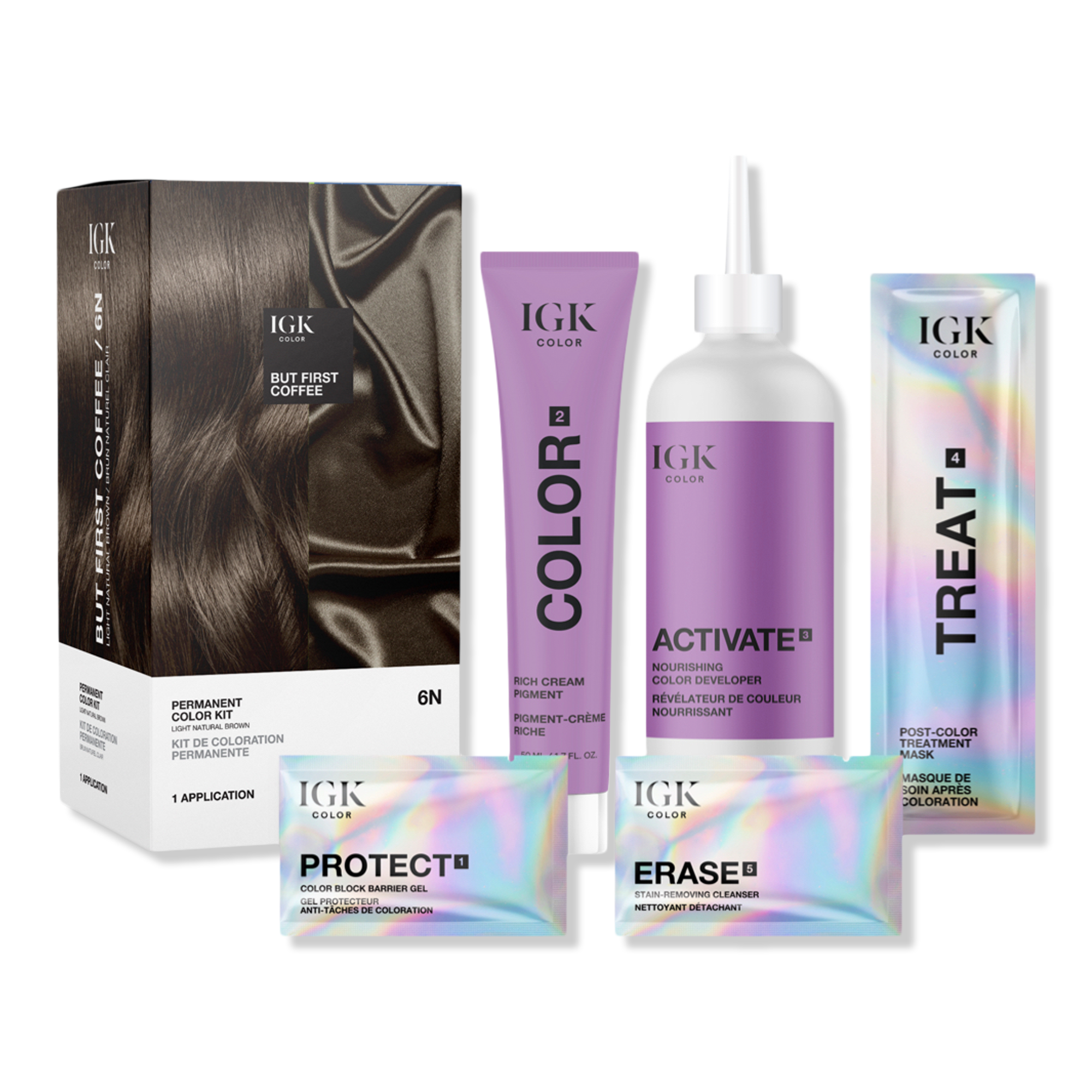 IGK Color shares its signature shades straight from the salon. Professional-grade, safe, and easy-to-use formulas are boosted with hair-nourishing ingredients clinically proven to leave hair 15x shinier*, with 40% reduced breakage + 88% softer & smoother strands** for vibrant, dimensional color.