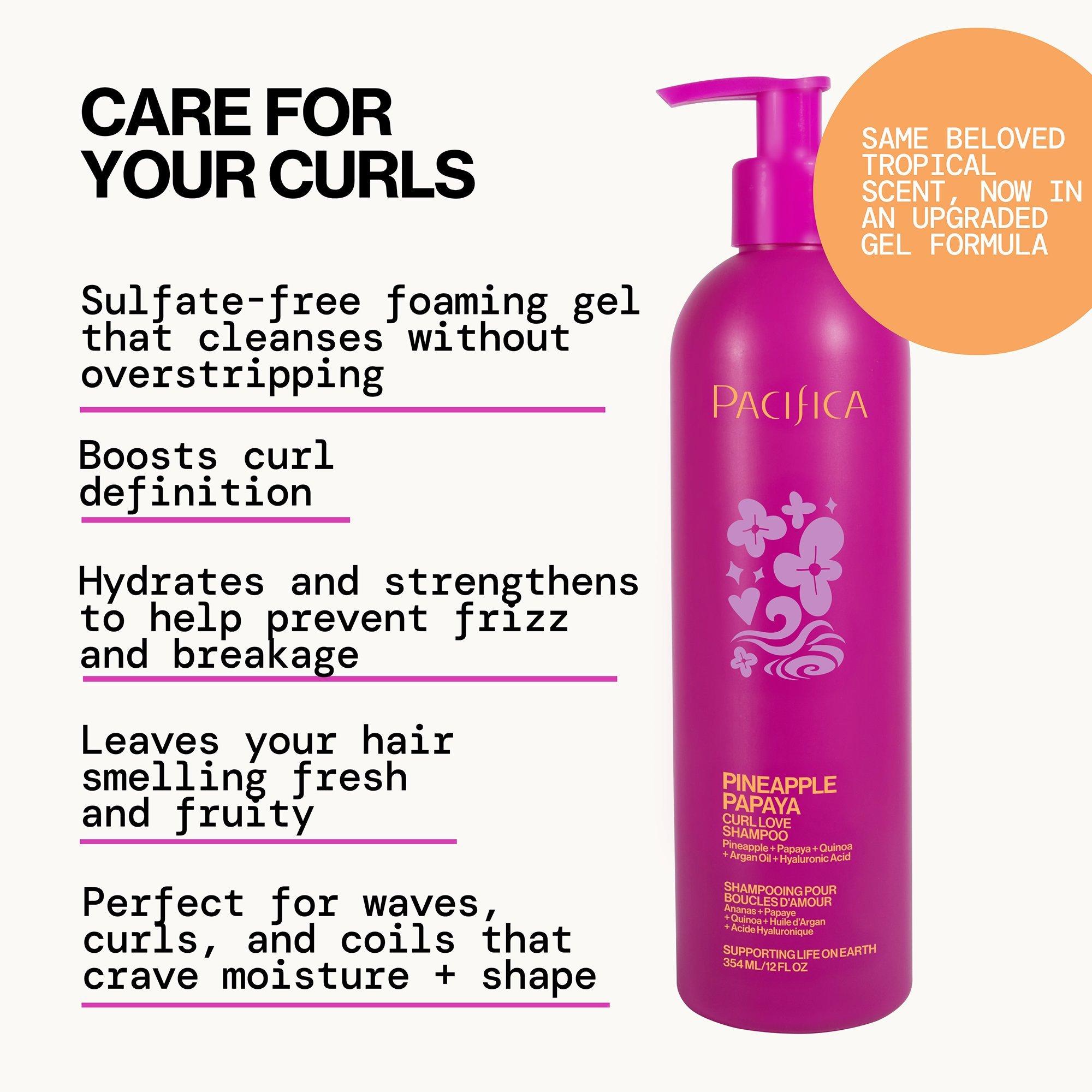 Pacifica's Pineapple Papaya Curl Love Shampoo deep cleans and helps preserve your natural curl while leaving your hair smelling fresh and like juicy pineapple.