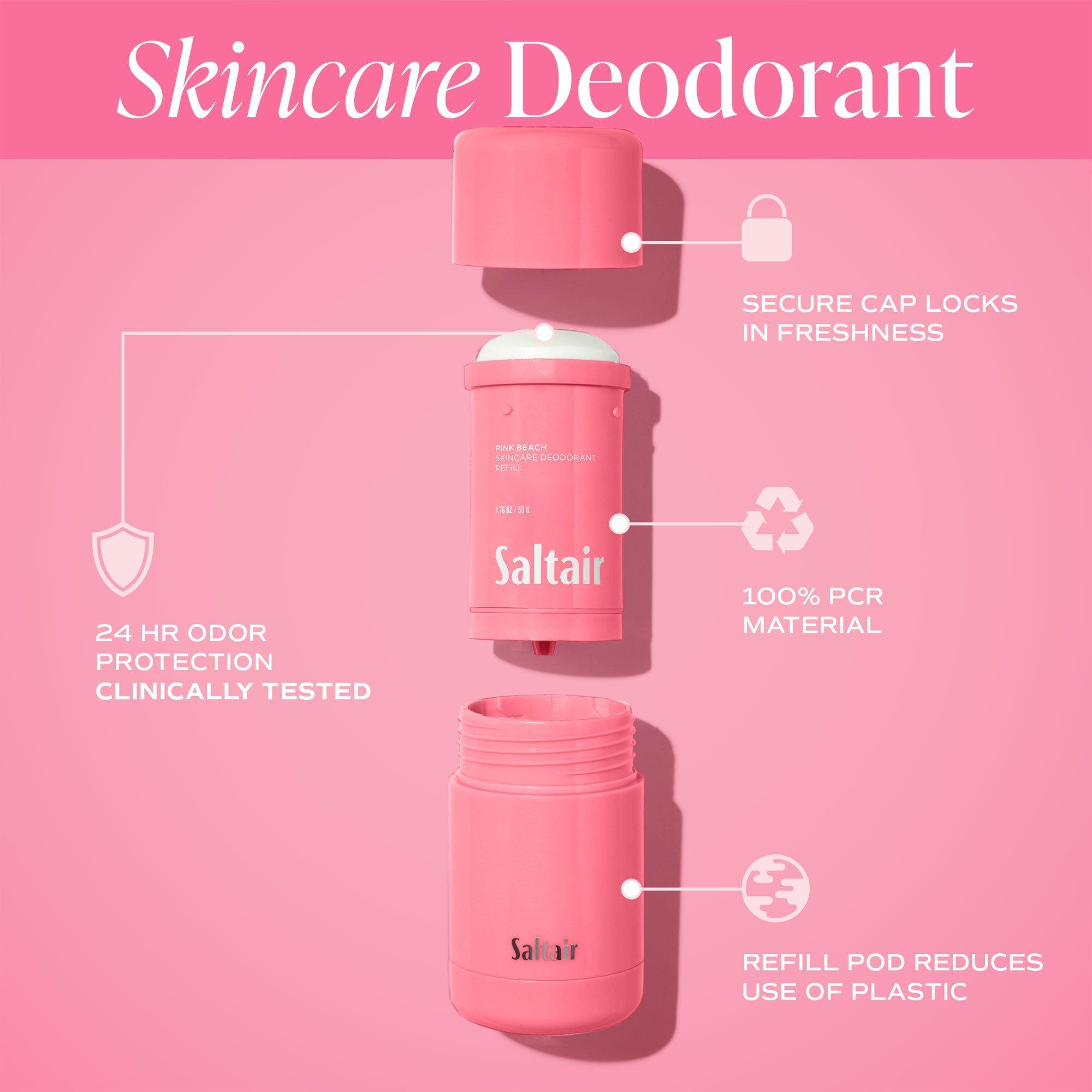 Saltair’s Pink Beach Skincare Deodorant is clinically tested and formulated with proven skincare ingredients to keep odors at bay for over 24 hours.