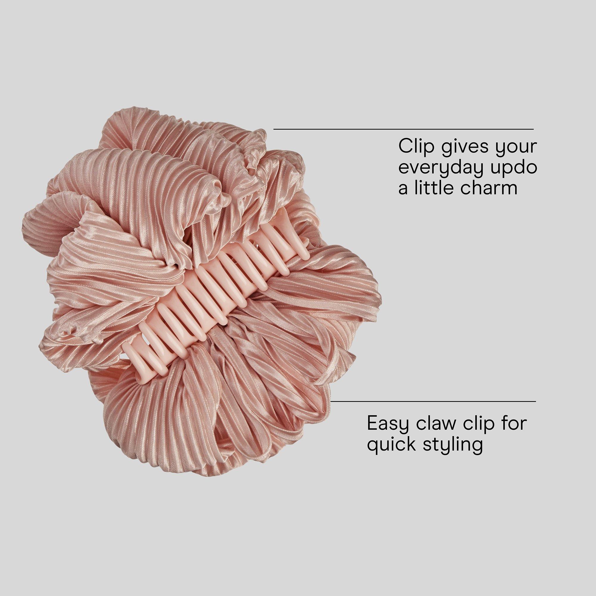 Make a statement with this Conair claw clip, featuring voluminous layers of pink pleated fabric tied into a cute bow. Designed to secure hair with ease, it’s perfect for ponytails, twists, or updos.