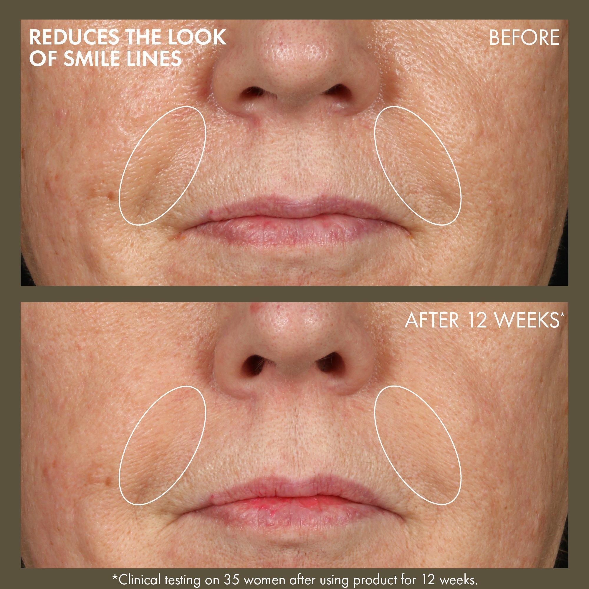 • Reduces the appearance of three types of stubborn wrinkles in just two weeks*: Forehead lines, Smile lines, Lines around eyes