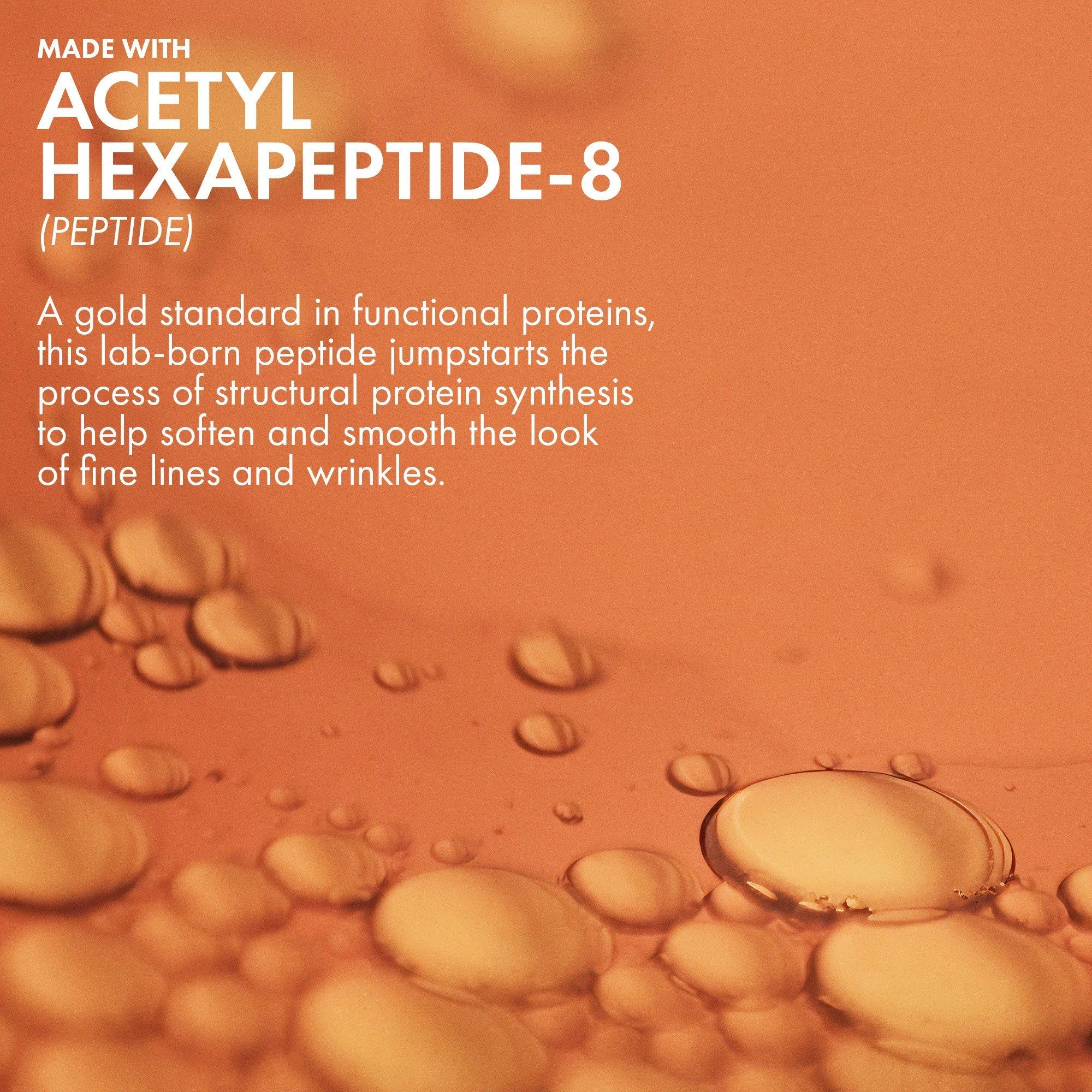 • Acetyl Hexapeptide-8 (Peptide): Helps soften and smooth the look of fine lines and wrinkles.