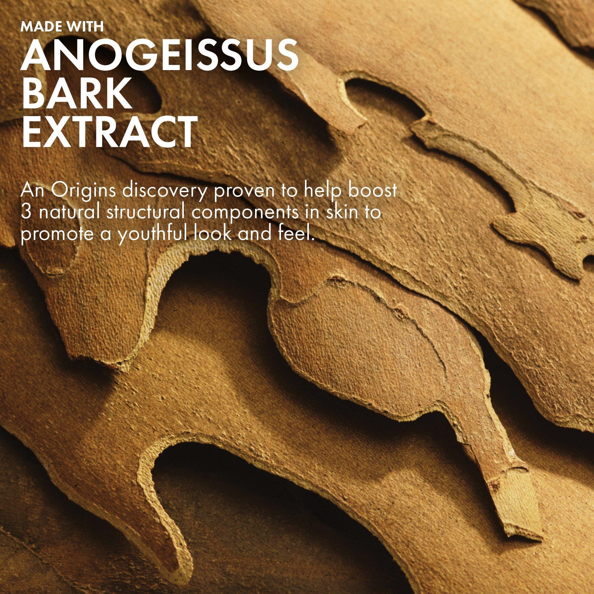 • Anogeissus Bark Extract: An Origins discovery proven to help boost skin’s natural key structural components and promote skin’s youthful-looking bounce.