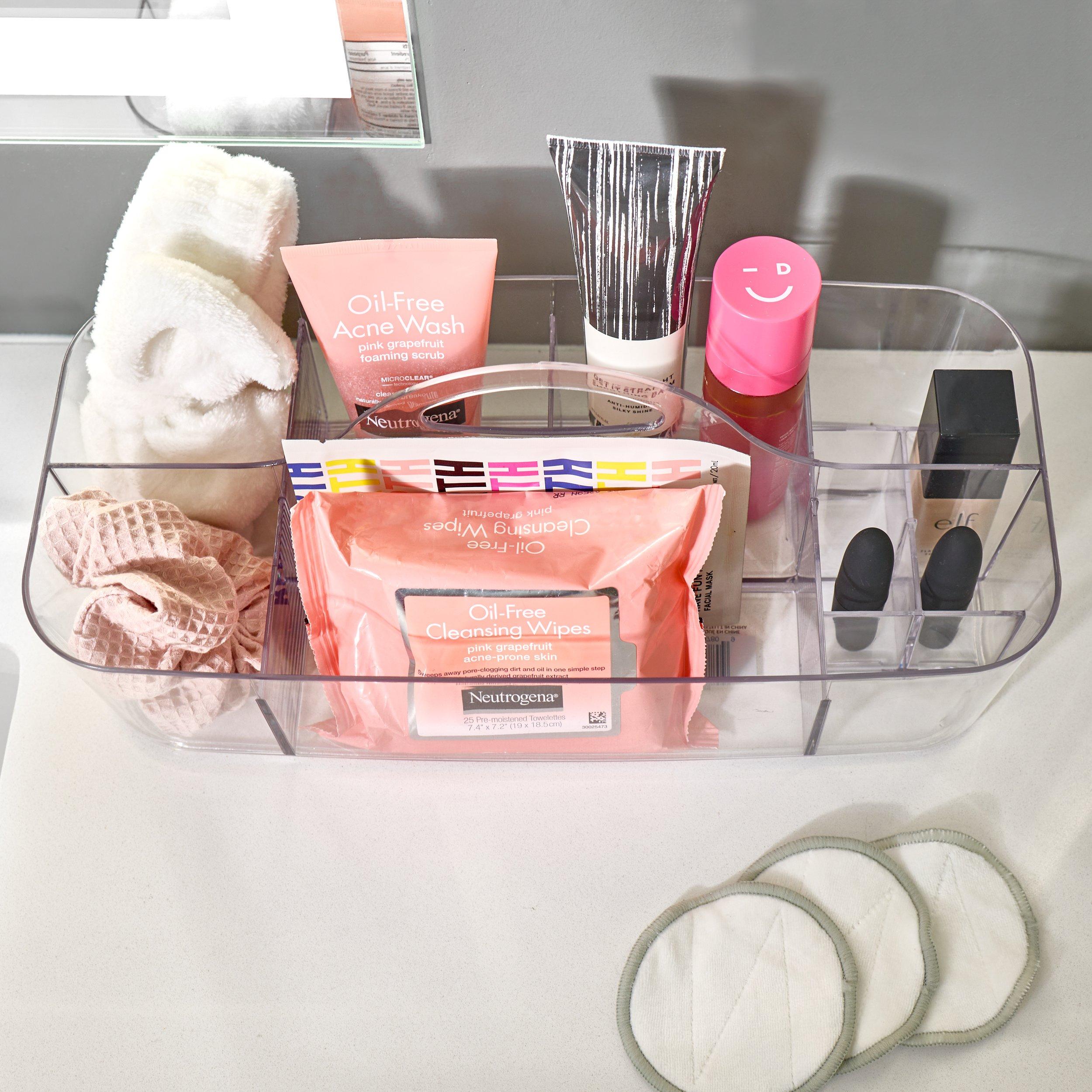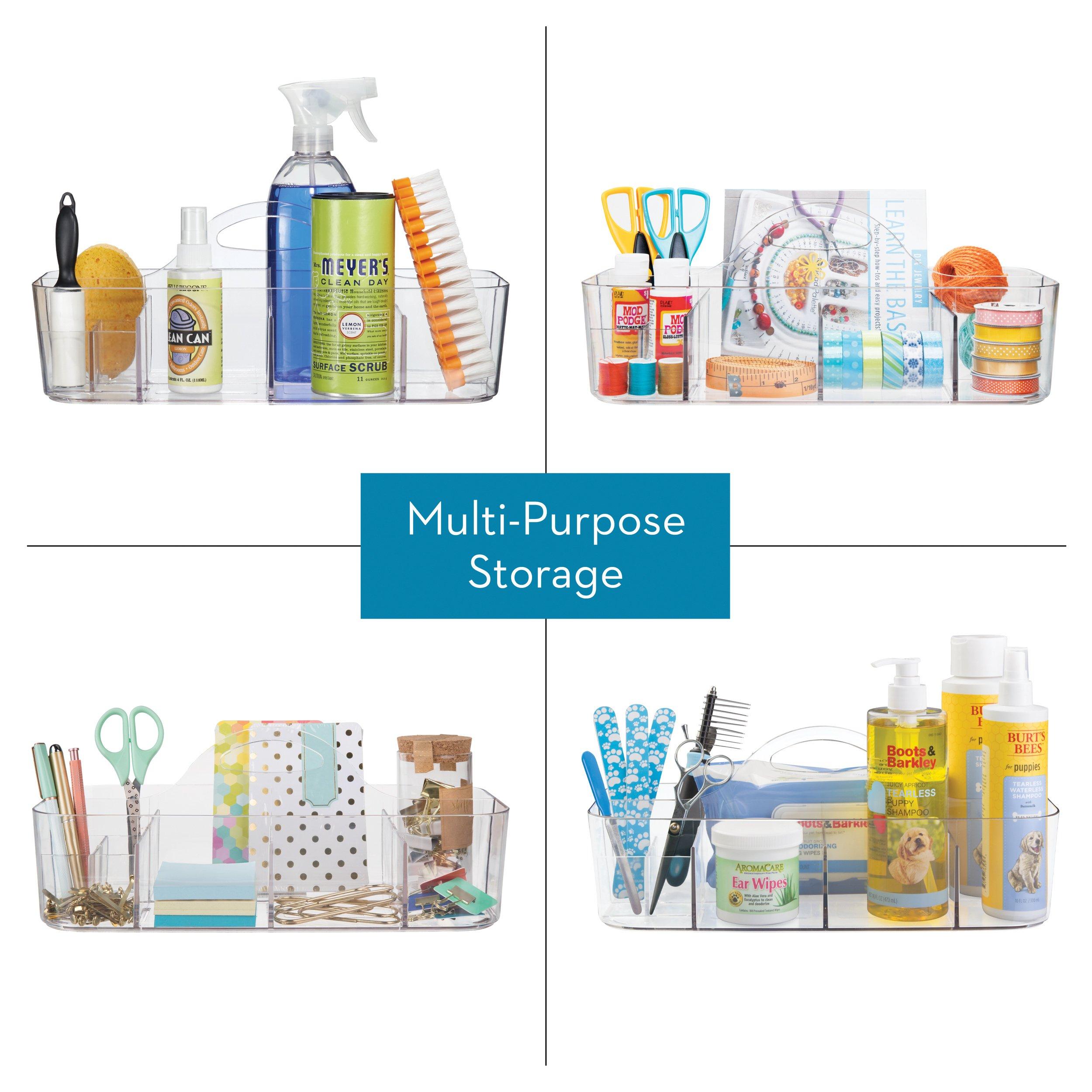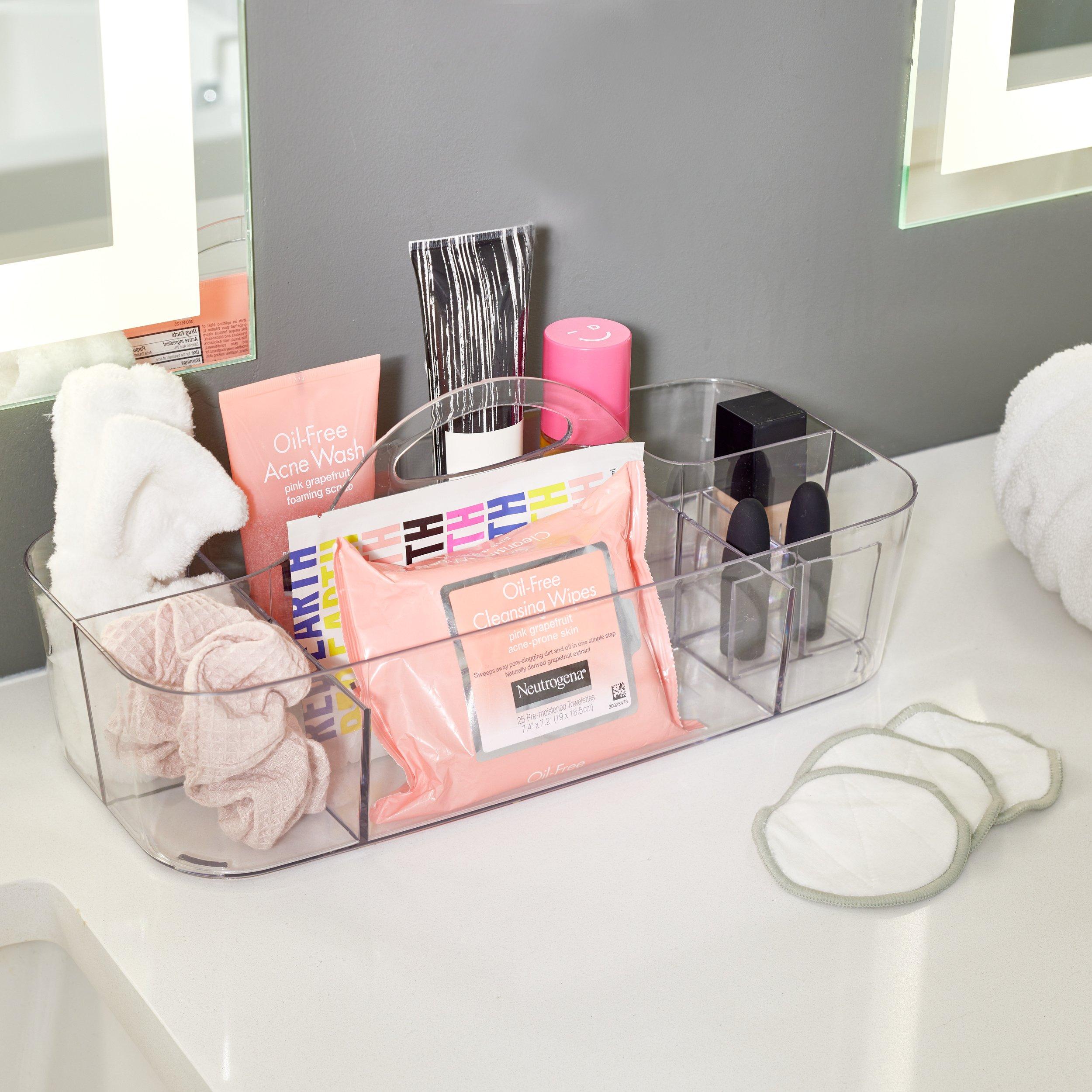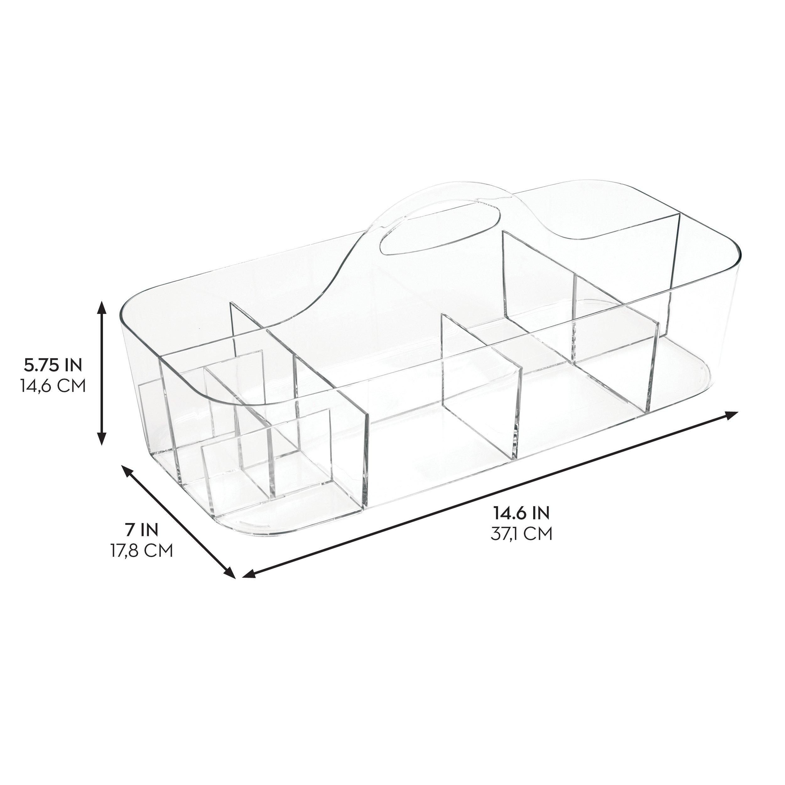 The iDesign Clarity Collection Bath Tote with Handles has nine compartments for storing shampoo and conditioner, razors, washcloths, and more. Not only is the shower caddy basket great for use in the bathroom, but it also works for extra home storage throughout the house for easy storage.