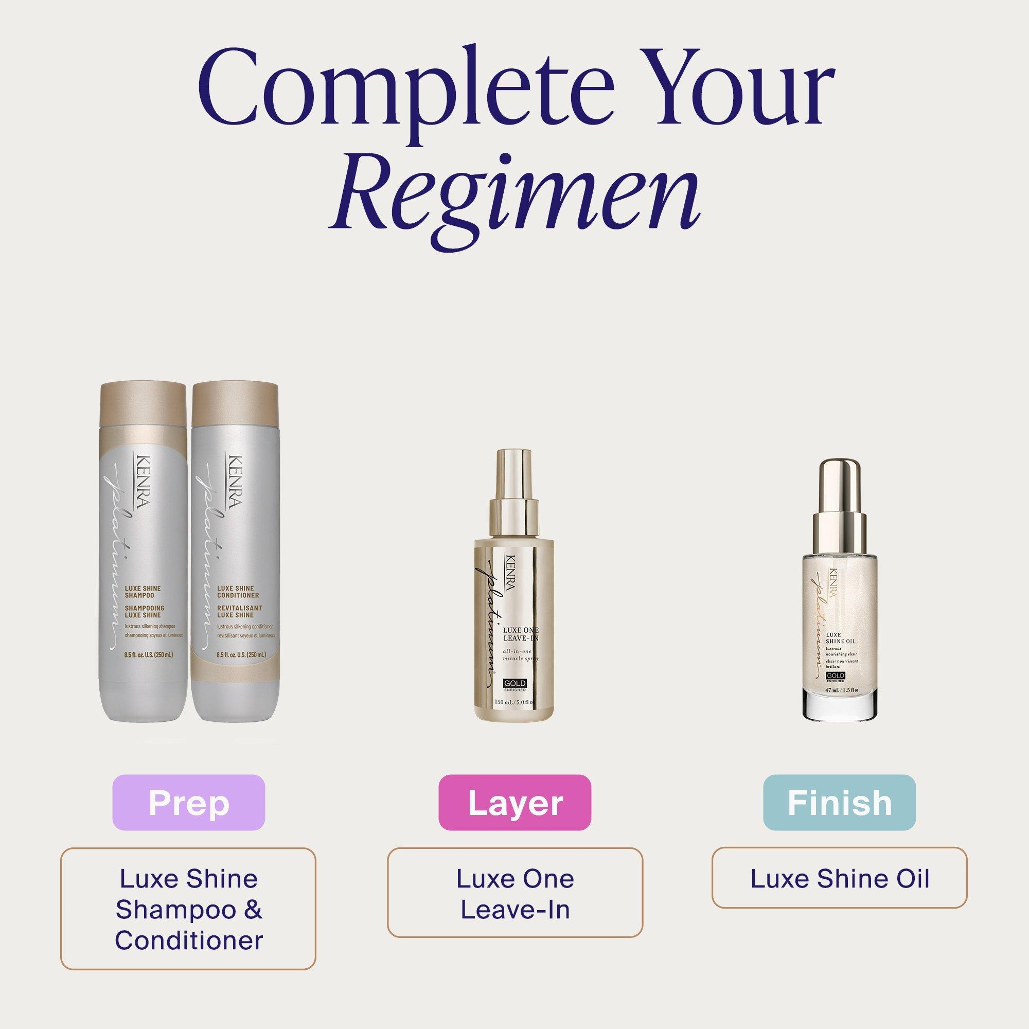Kenra Platinum’s Luxe Shine Conditioner transforms dull strands into silky smooth feeling hair that has glass-like shine. This shampoo replenishes hair for more conditioned and manageable hair.* Formulated to enhance style memory to effortlessly retain your style longer.
