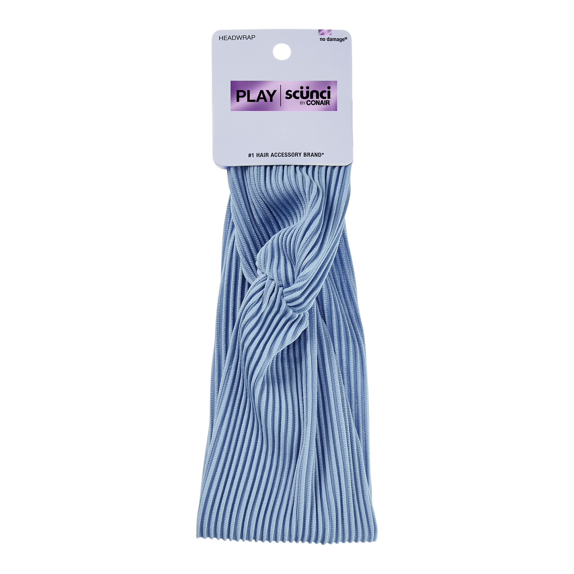 Keep hair neatly away from your face with comfort and style with the Scünci PLAY ribbed fabric headwrap! This trendy blue headwrap has a ribbed texture and knotted top that make going from work to play an effortless and stylish transition.