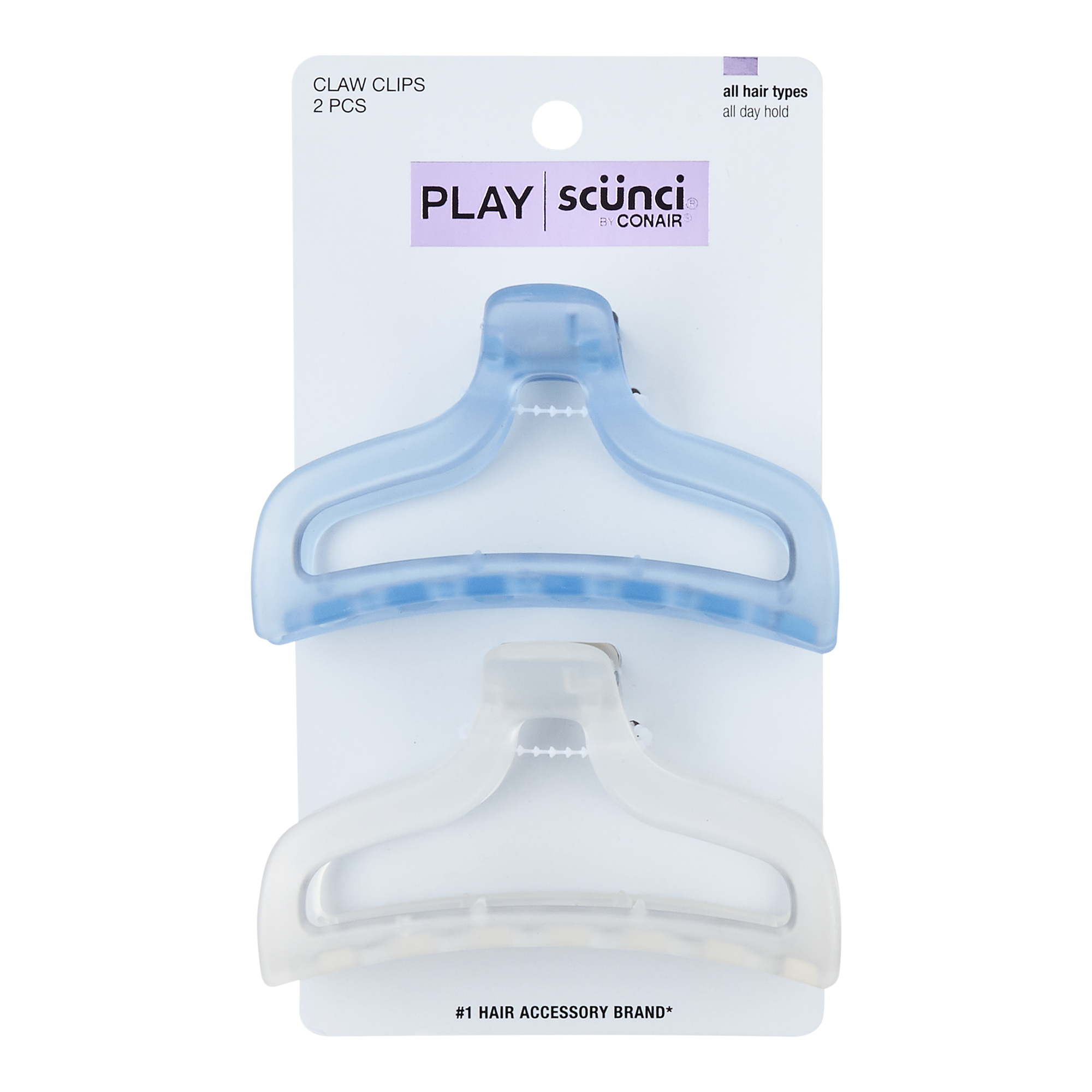 Secure an updo with Scünci Play Translucent Claw Clips. Designed with a stylish center cutout.