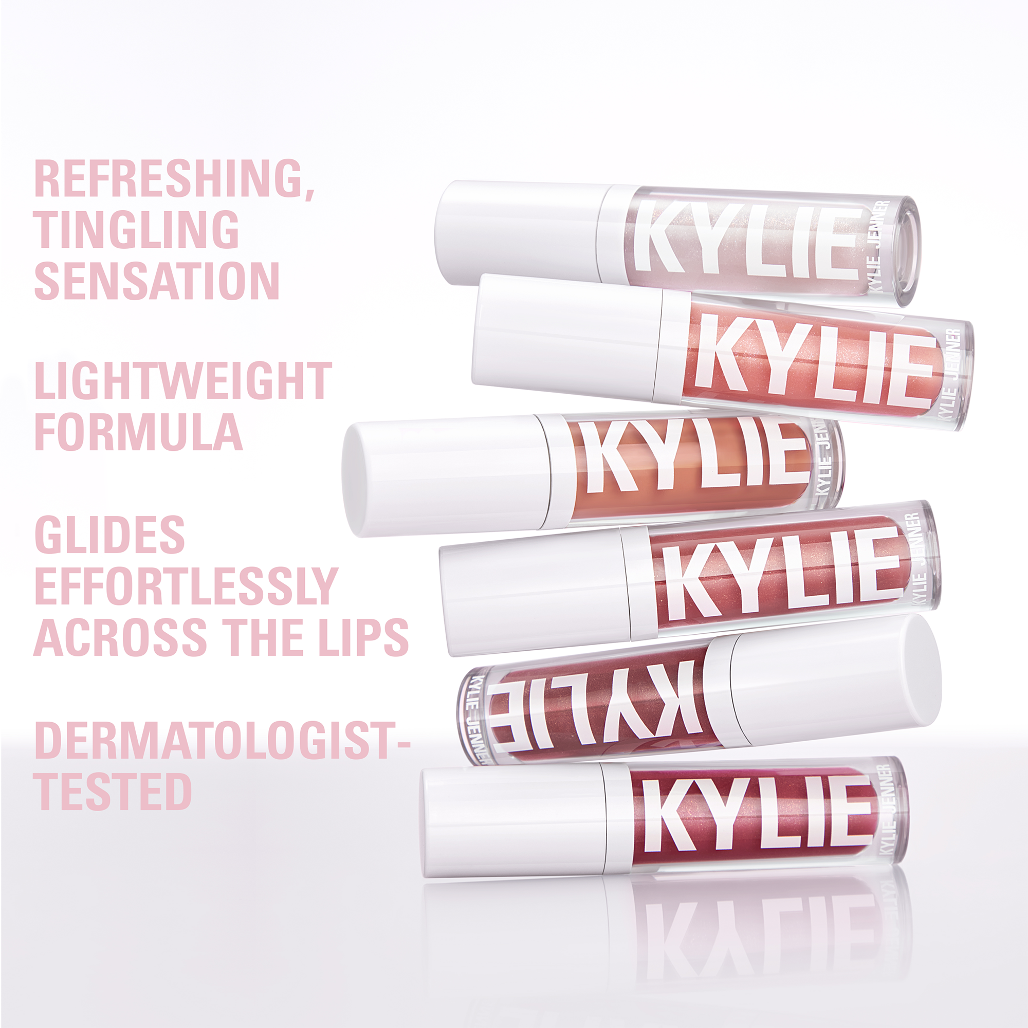The KYLIE COSMETICS Plumping Gloss is your new go-to for a comfortable, fuller, ultra-shiny pout. Its lightweight formula provides a refreshing tingling sensation. Featuring a Plumping Complex, it helps to make lips fuller. Apply this multidimensional gloss whenever you want a wet lip look.