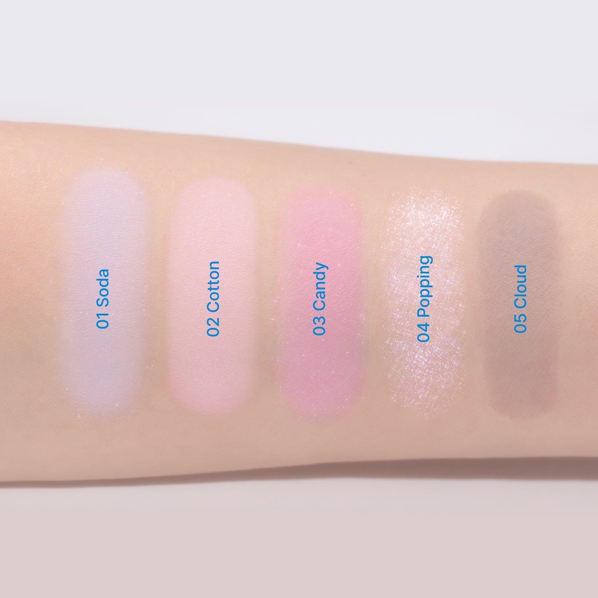 fwee's Pocket Eyeshadow Palette is a cute, compact palette with five playful, essential shades. Its soft, candy-like texture makes it easy to swipe and blend for a fun, vibrant look - no extra skills needed, perfect for beauty on the go.