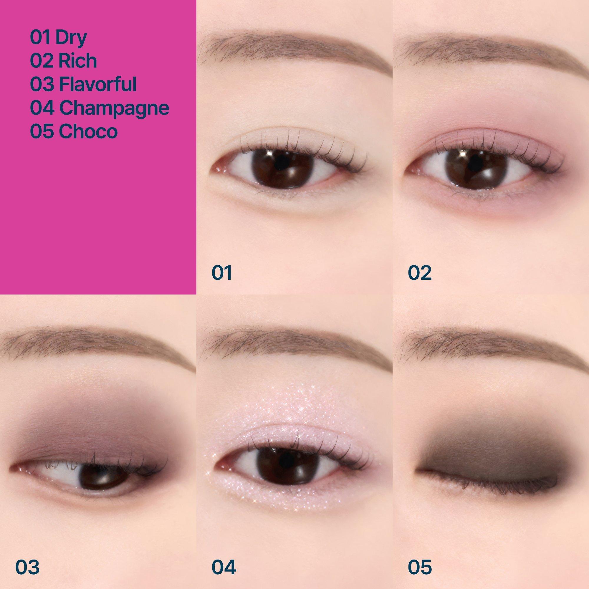fwee's Pocket Eyeshadow Palette is a cute, compact palette with five playful, essential shades. Its soft, candy-like texture makes it easy to swipe and blend for a fun, vibrant look - no extra skills needed, perfect for beauty on the go.