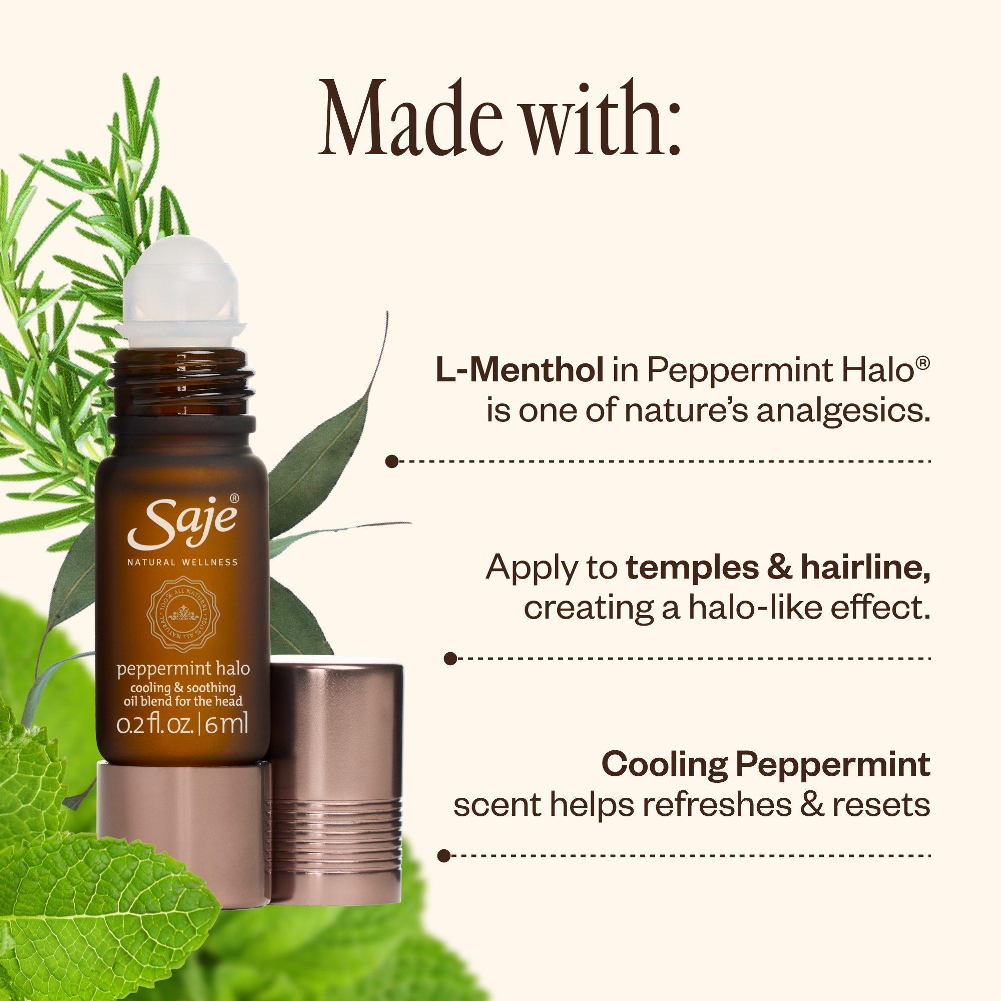 • L-Menthol in Peppermint Halo® is one of nature’s analgesics.*