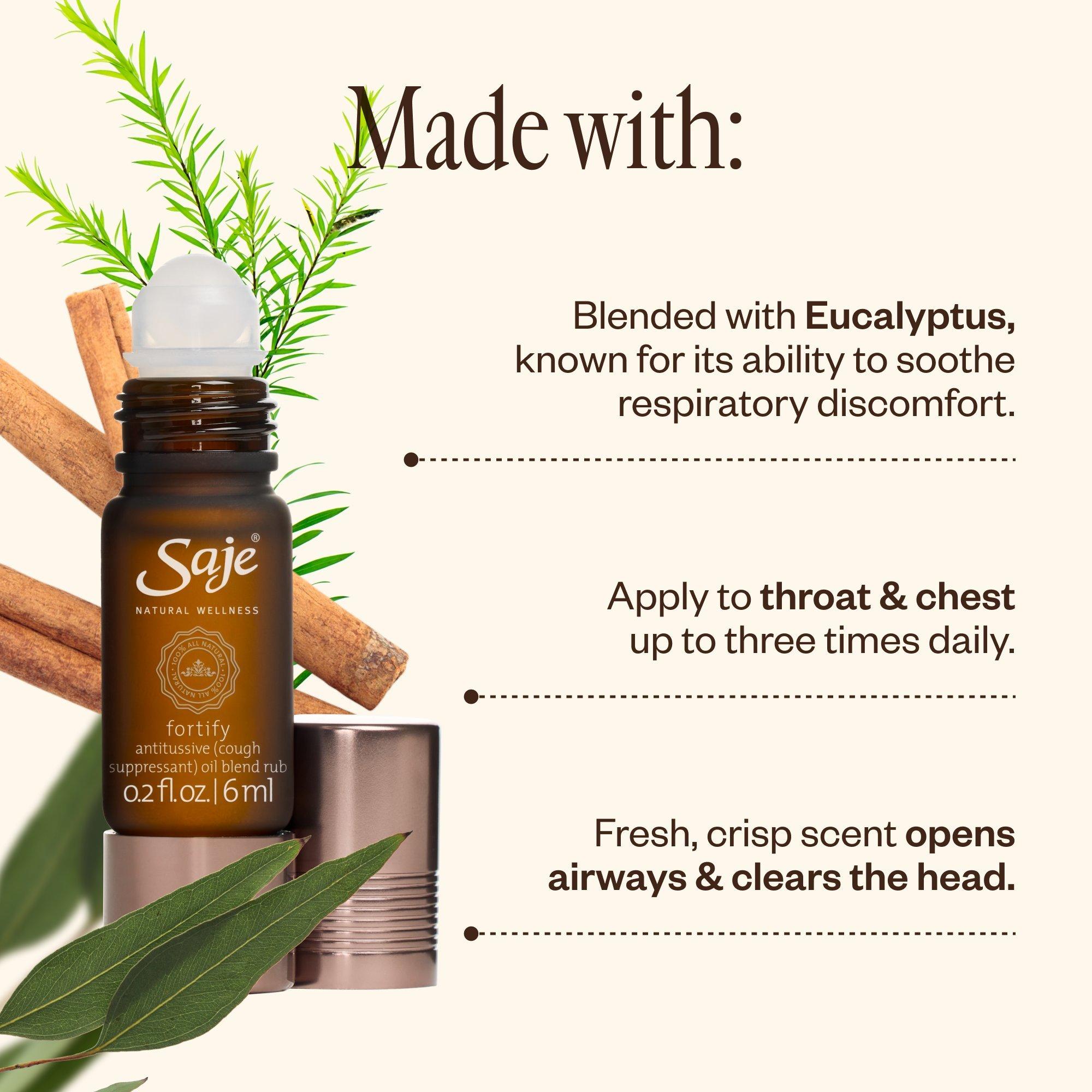 • Eucalyptus in Fortify® is known as the “breathing oil” for its ability to soothe respiratory discomfort.