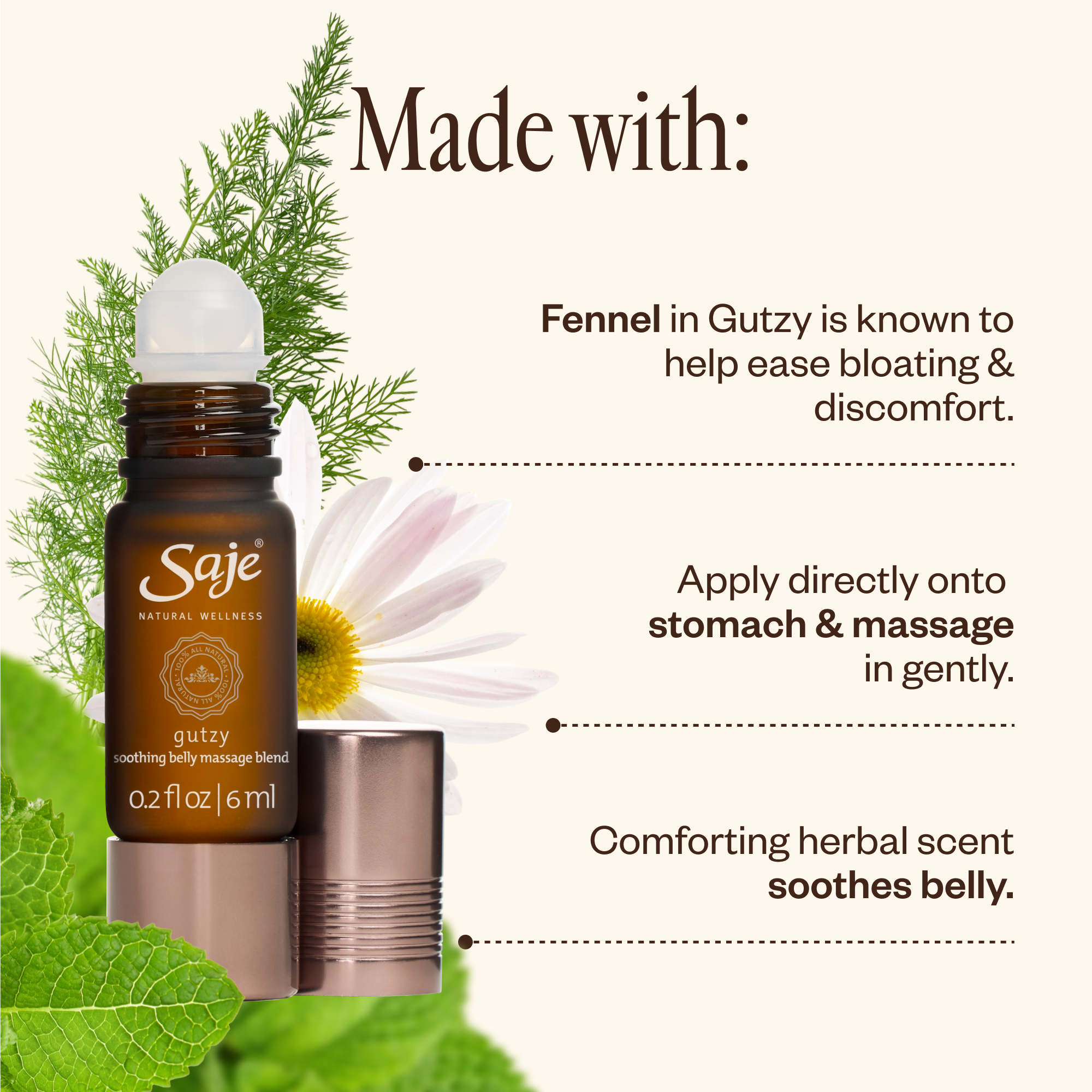• Fennel in Gutzy® is known to help ease bloating and discomfort.*