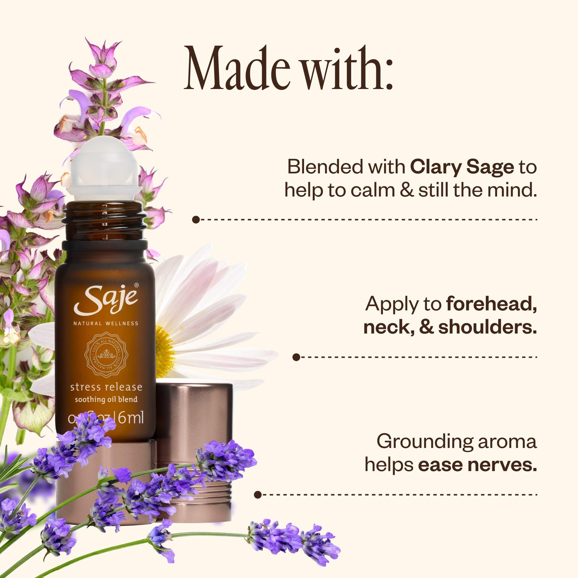 • Clary Sage in Stress Release helps to calm and still the mind.